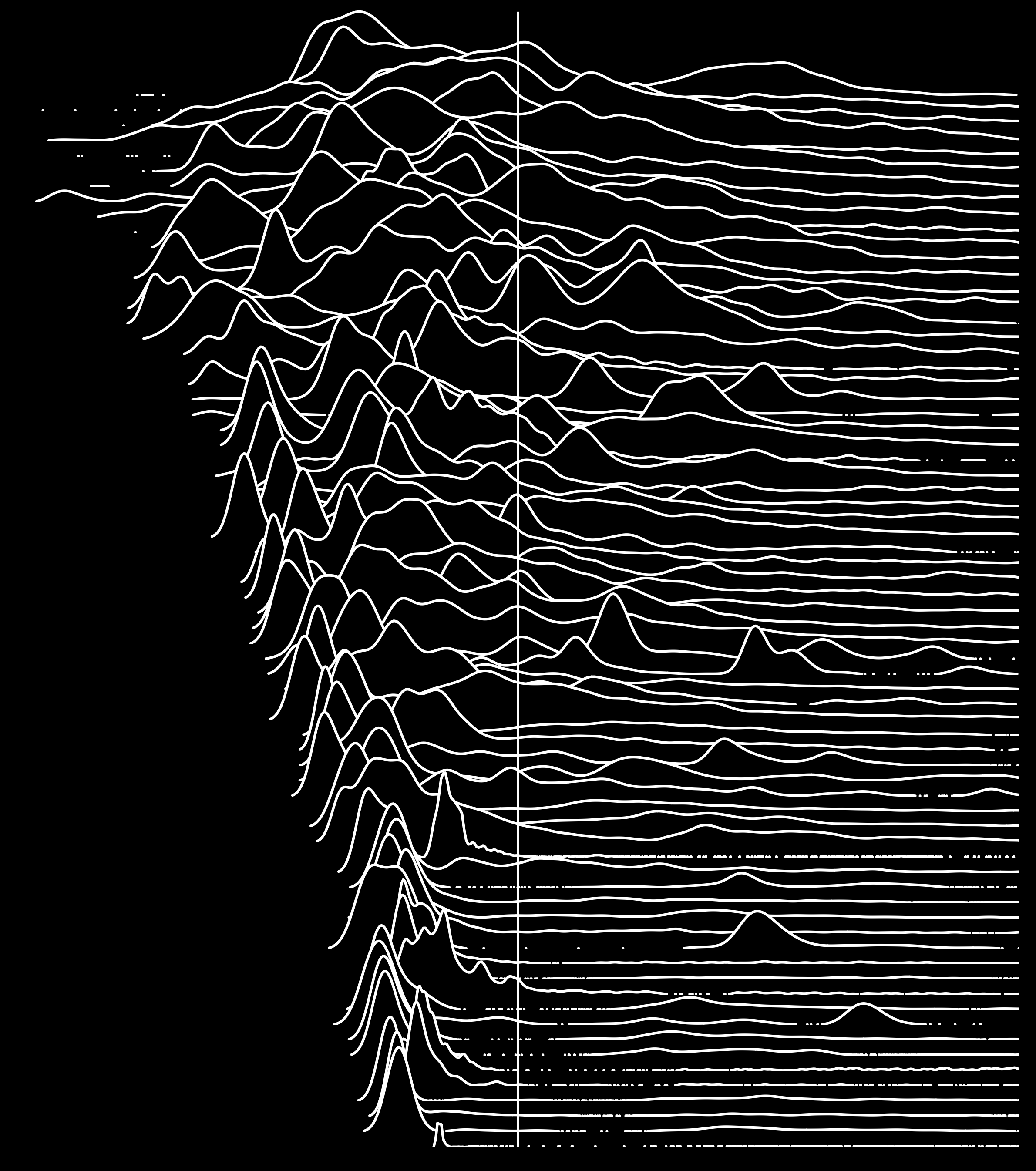 These frequency trails are ordered top-down based on CoV, which locates similar shapes together.