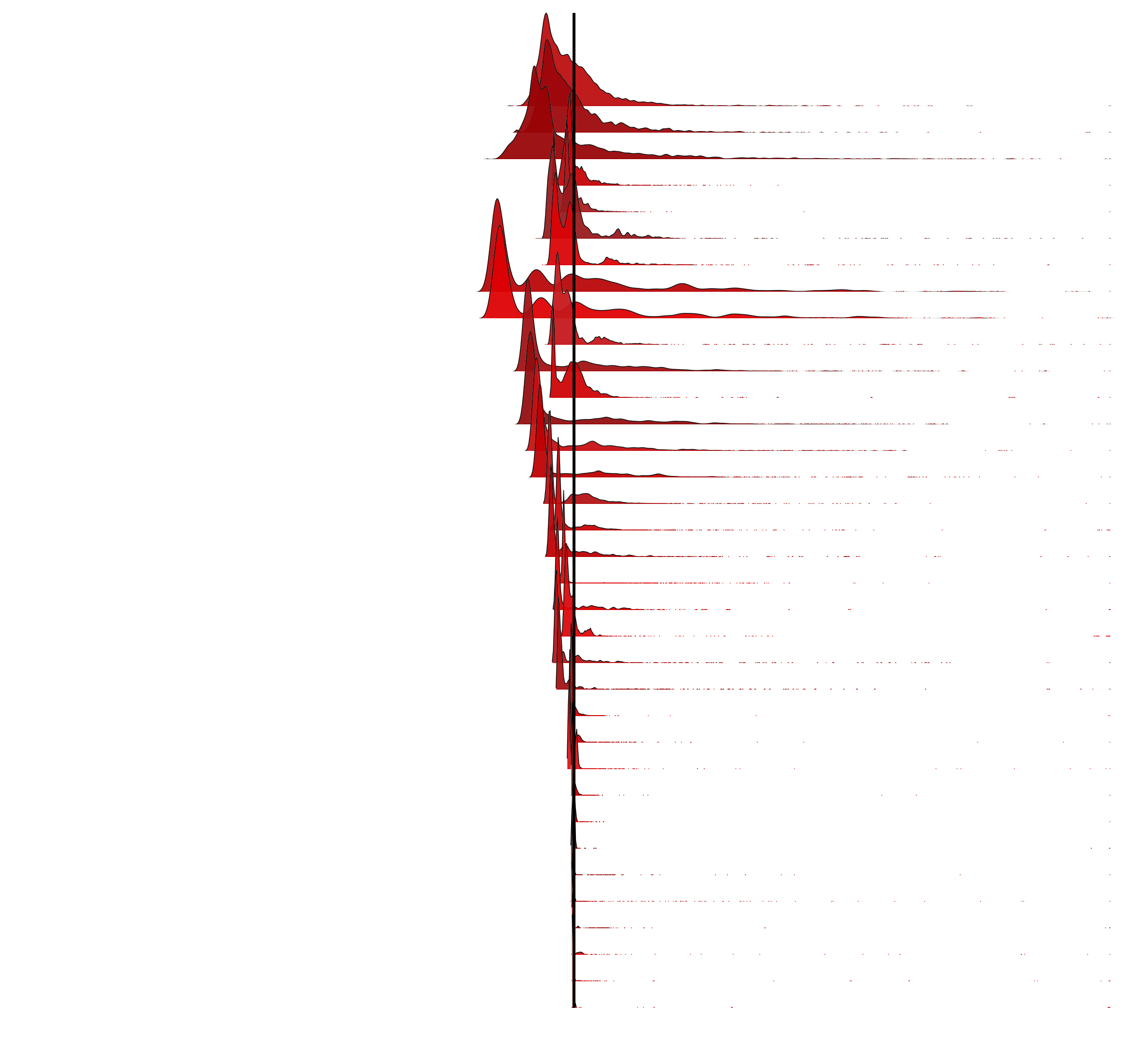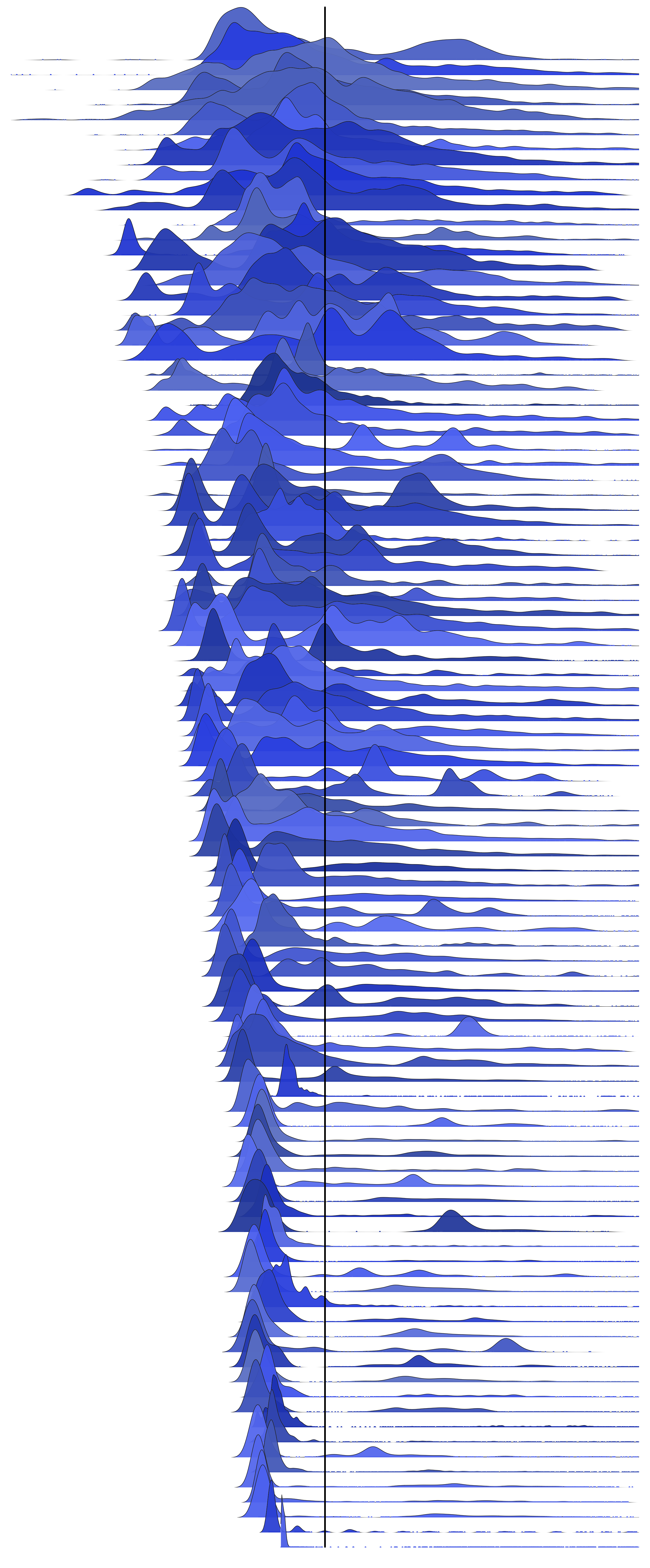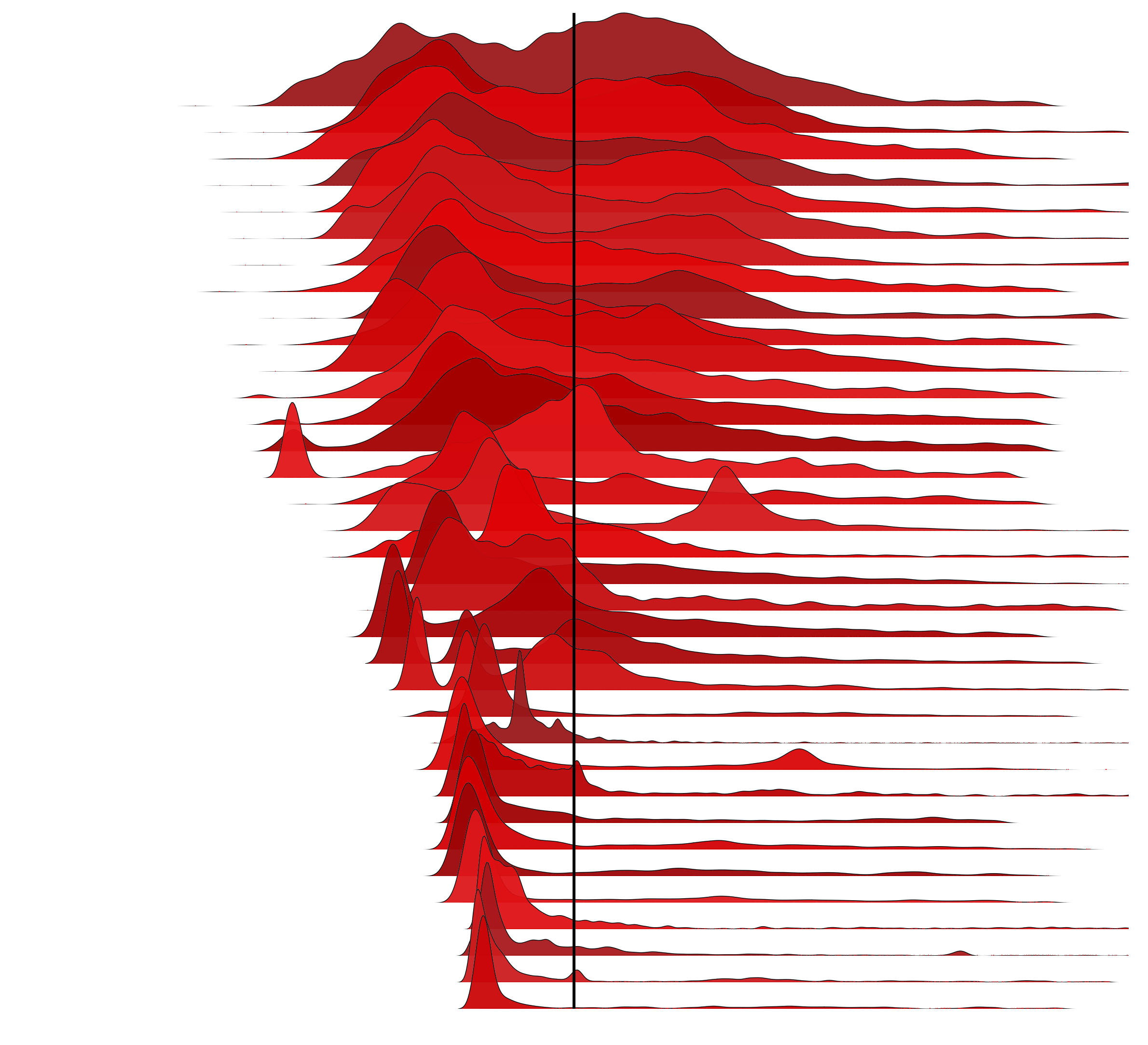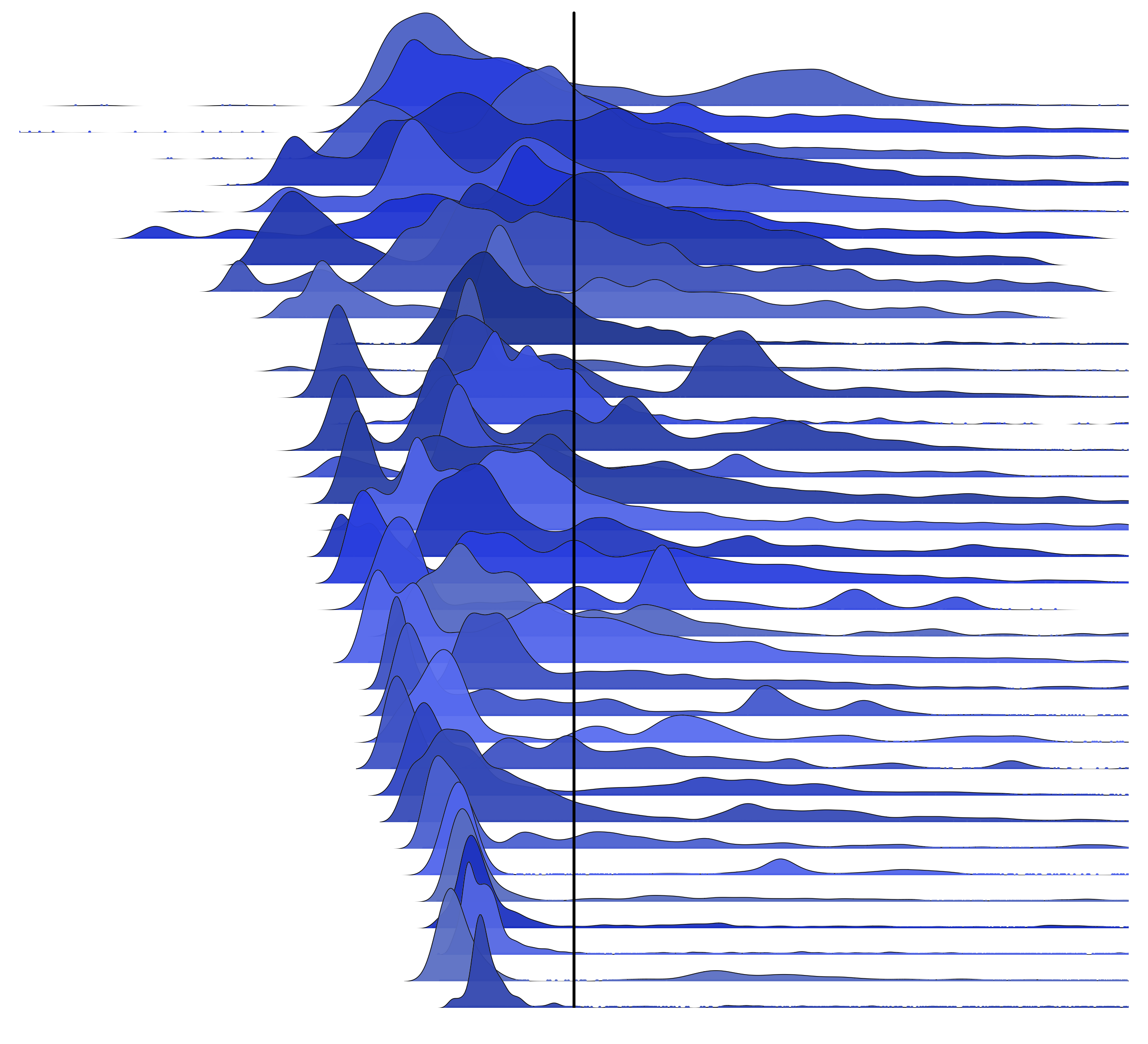 Now let's see the same 35 distributions, centered on the mean: