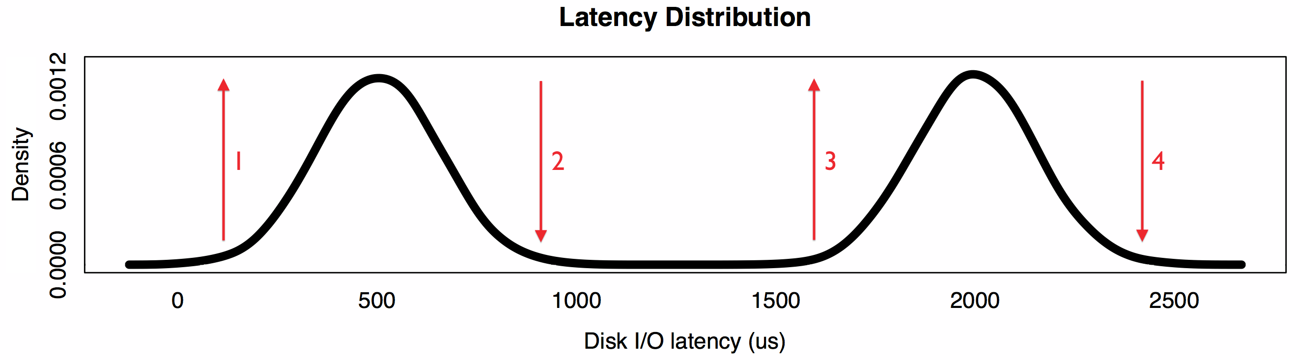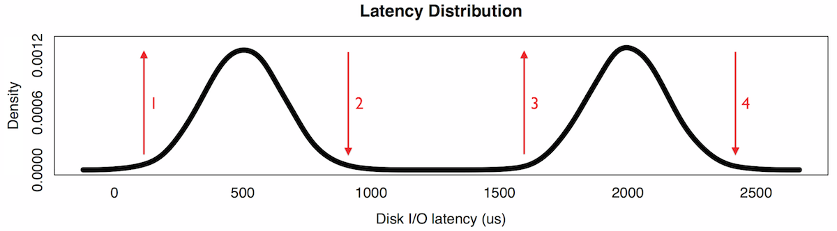 Understanding multiple modes is important for performance analysis, especially for latency distributions. The average, or mean, implies a central tendency, which is often not the case.