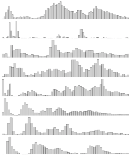 One looks trimodal. Some look bimodal. And some look in between.