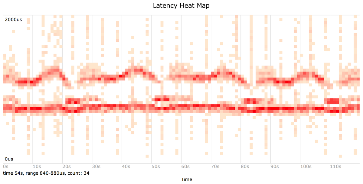 If you want to add heat maps to your monitoring product, that would be great! However, note that tracing per-event latency can be expensive to perform, and you will need to spend time understanding available tracers and how to use them efficiently. Tools like eBPF on Linux, or DTrace on Solaris/BSD, can minimize the overheads as much as possible using per-CPU buffers and asynchronous kernel-user transfers. Even more effective: they can also do a partial histogram summary in kernel context, and export that instead of every event. On older Linux, you can create perf_events heat maps, although without eBPF it requires passing events to user space for post processing, which is more expensive. Other tools (eg, strace, tcpdump) are also expected to have higher overhead as they also pass all events to user space. This can cause problems for production use: you want to understand the overhead before tracing events.