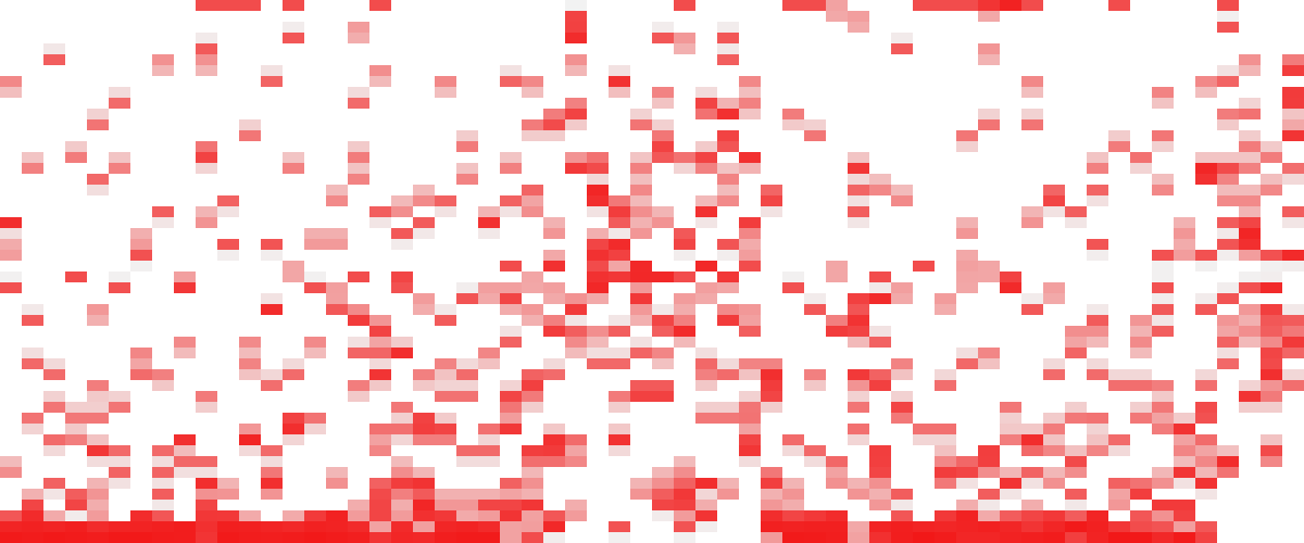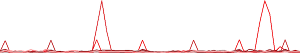 The darker colors at the bottom of this heat map show a constant concentration of idle CPUs. The red line at the top shows a constant presence of CPUs at 100% utilization. The dark color of the 100% line shows that multiple CPUs were at 100%, not just one. (I'll explain the exact color algorithm in the Saturation section).