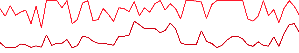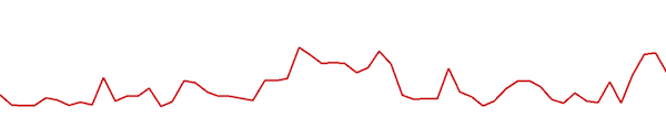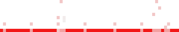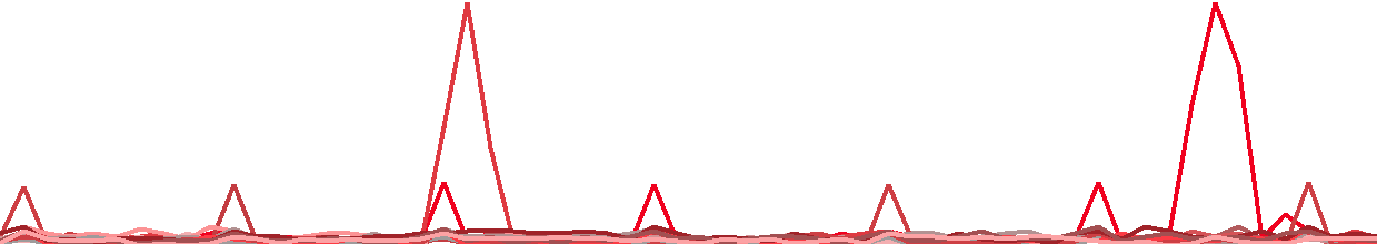 The hue used above is red, merely to stay consistent with other images here. When used in the Highlighting Data section, more red meant hotter CPUs, which seems intuitive. Here, more red means a concentration of CPUs, even when the line we're looking at represents idle CPUs. This probably isn't a good choice of color, and can be easily changed (Sun Microsystems Analytics chose blue; Joyent Cloud Analytics chose orange).