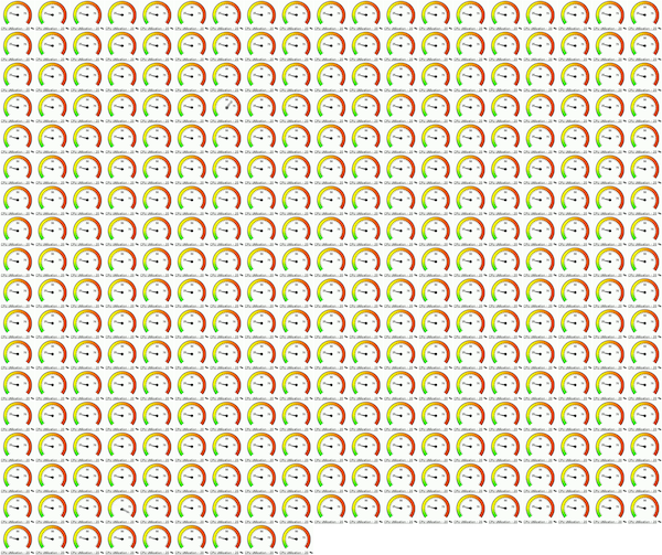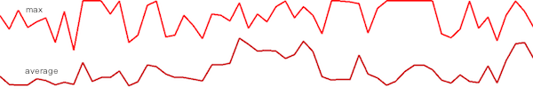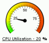 As with bar graphs, this only shows a single utilization value. Other values may be indicated around the edge: this example has a green to red spectrum. I'm not sure what this coloring means in the context of CPU utilization. At the very least, it shows which end of the range is which. It could also just be decorative, which along with the whitespace around the round shape makes this visualization type one of the least dense, which may be a problem for scaling.
