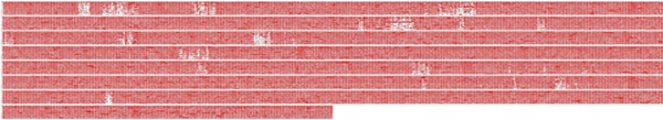 While these images look similar to heat maps (covered later), they aren't the same. One reason is that heat maps (usually) have scalar dimensions. Within the server images, the x-axis is scalar (time), but the y-axis is the set of CPU IDs - which may have no relative meaning (operating systems can enumerate their virtual CPUs in odd ways). On the data center image, the x- and y-axes span repeated ranges. Servers that are nearby on the image are also nearby physically, just due to the way the data was collected, but this is in no way a reliable scalar dimension.