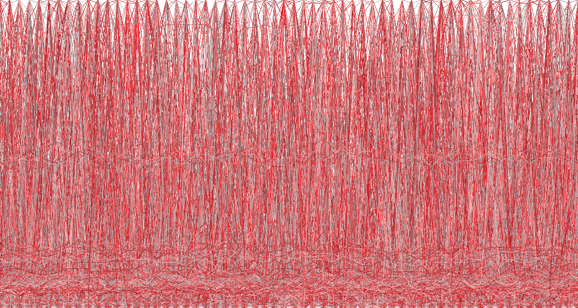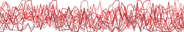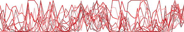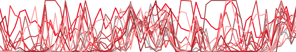 This visualization hasn't really worked (using the full range of random colors doesn't help either). The pattern of horizontal lines at about 20% utilization is only visible because those CPUs were drawn last, on top of the previous lines (you can see them at the bottom of data center visualization in the Highlighted Data section). If the CPU ordering is shuffled when drawn, those lines vanish.