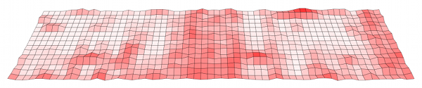 One problem may already be expected, as shown on the right. The utilization value can change steeply from one point to the next, making the surface difficult to follow. This can be improved by reducing the elevation of the utilization dimension.