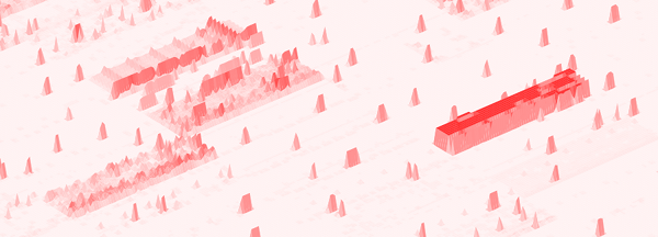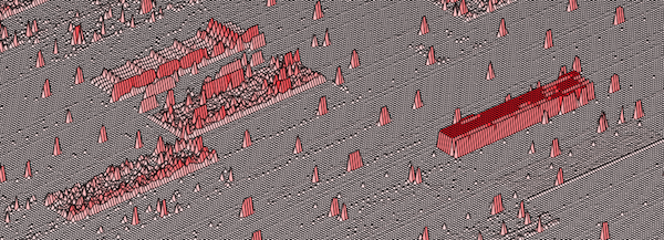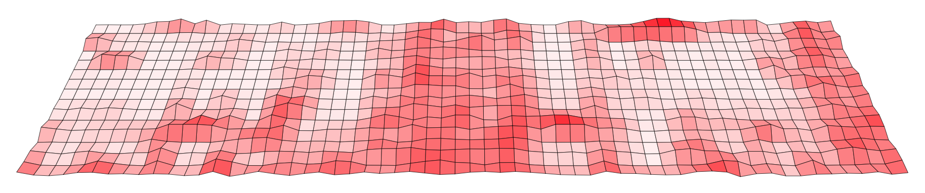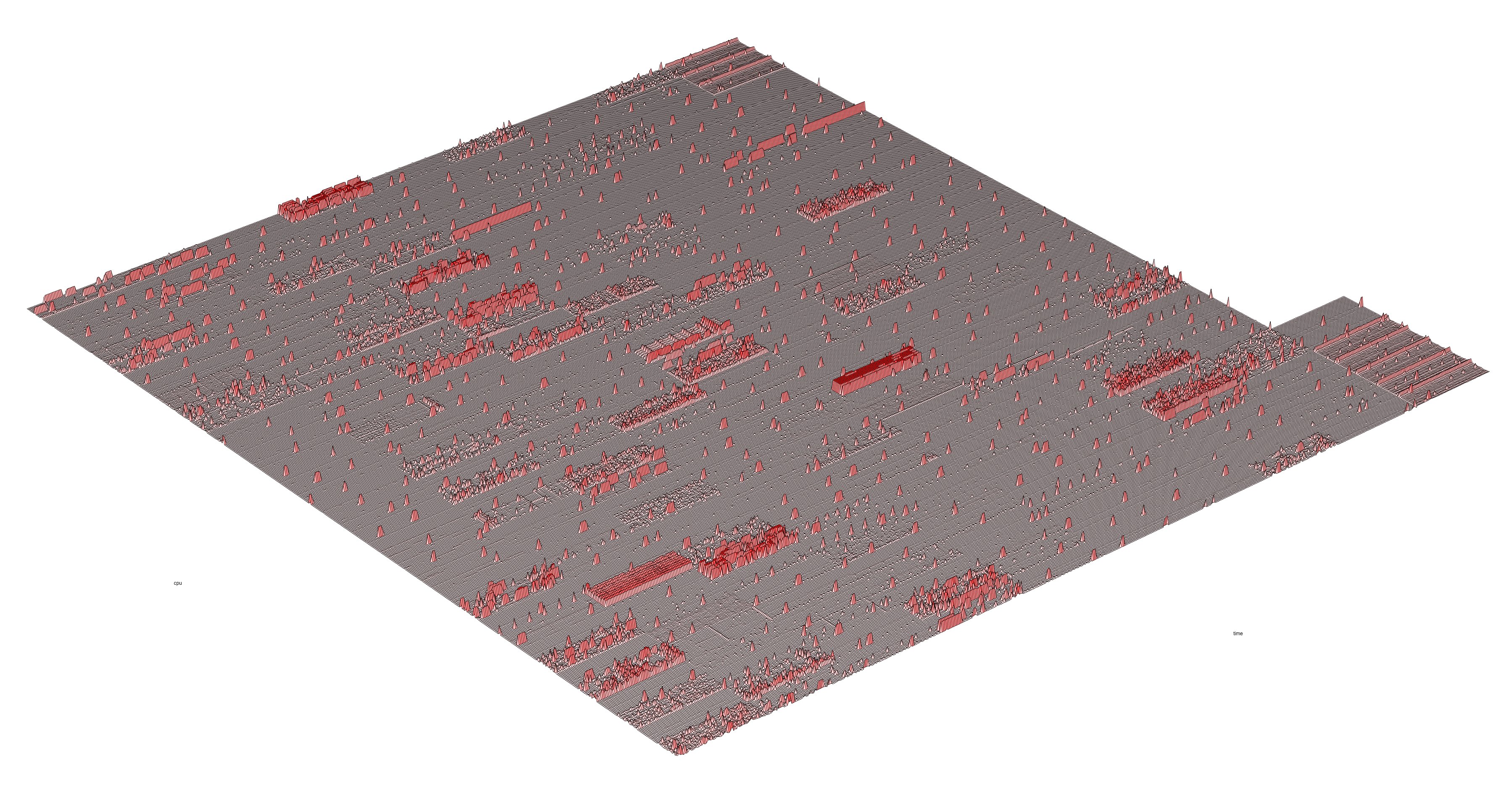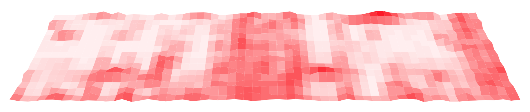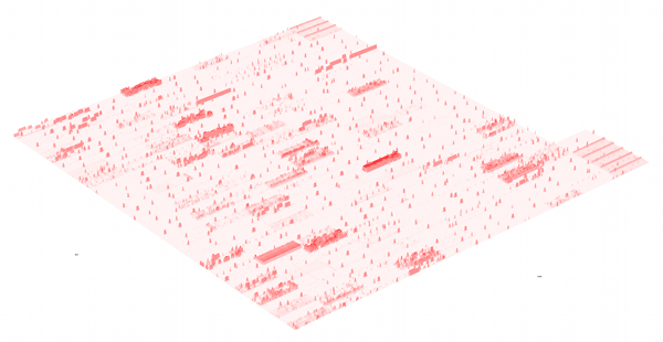 This line width creates an extra effect highlighting subtle changes in elevation (click for full version). If the lines are too fine, the visualization approaches the previous version; if the lines are too thick, it appears black.