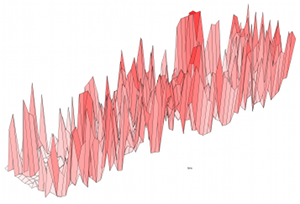 Three-dimensional plots can be created from the dimensions: CPU ID, time and utilization. Given that two of the dimensions are provided in the data set as regular steps, CPU ID and time, a surface plot may be suitable as these map to regular latitude and longitude points. The utilization value becomes surface elevation.