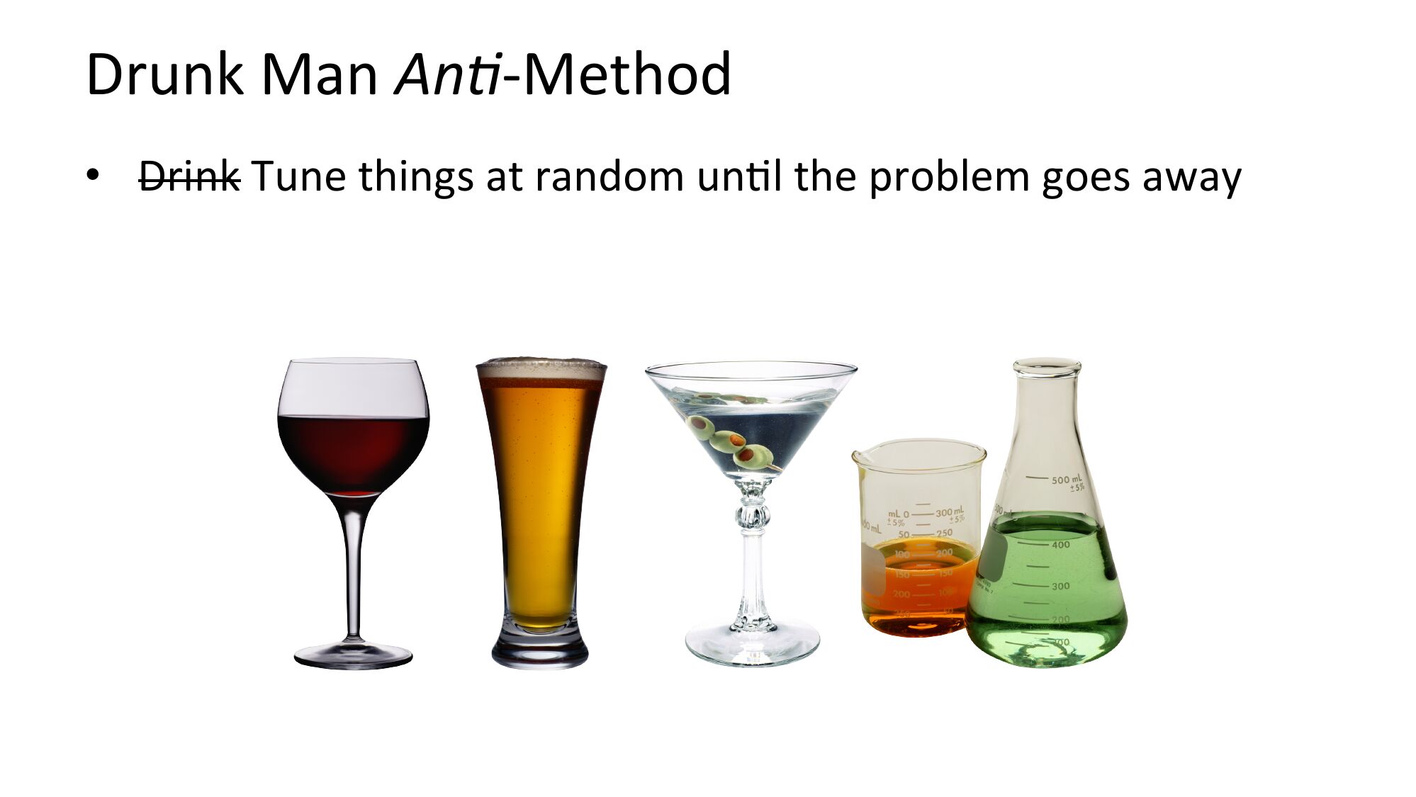 Drunk Man An2-Method • Drink Tune things at random unNl the problem goes awayslide 12: