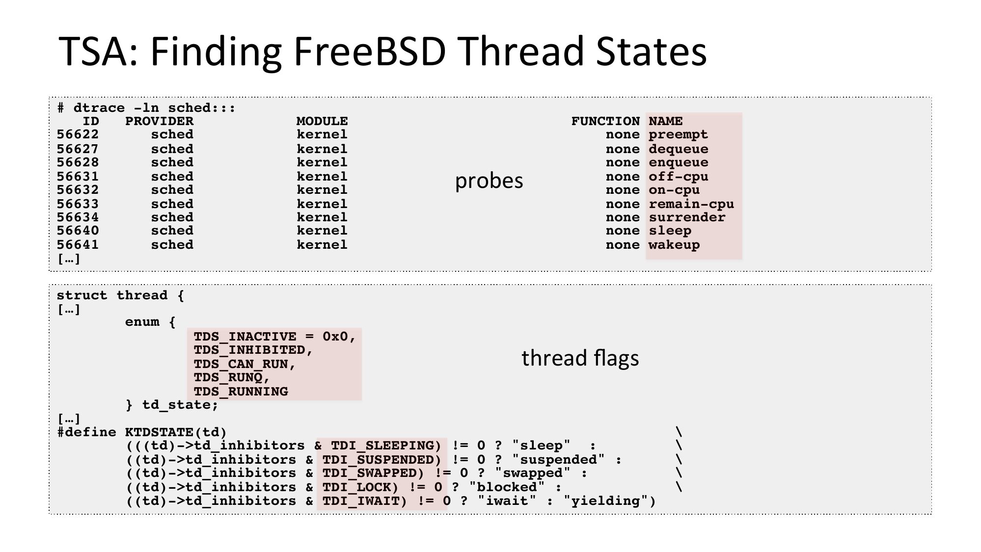 eg, add /curthread->gt;td_state gt;ts);