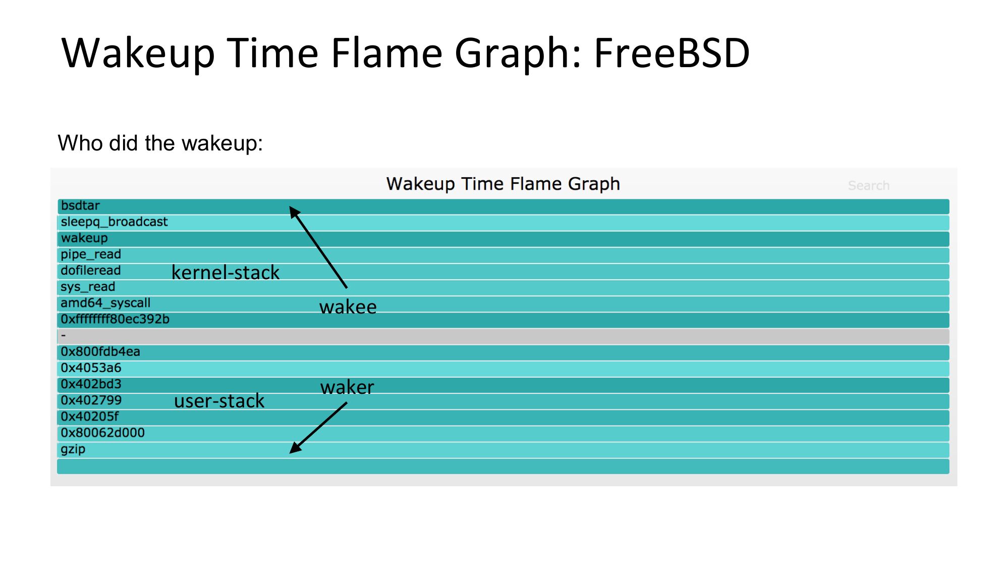 Wakeup Time Flame Graph: FreeBSD Who did the wakeup: kernel-stack wakee user-stack wakerslide 45: