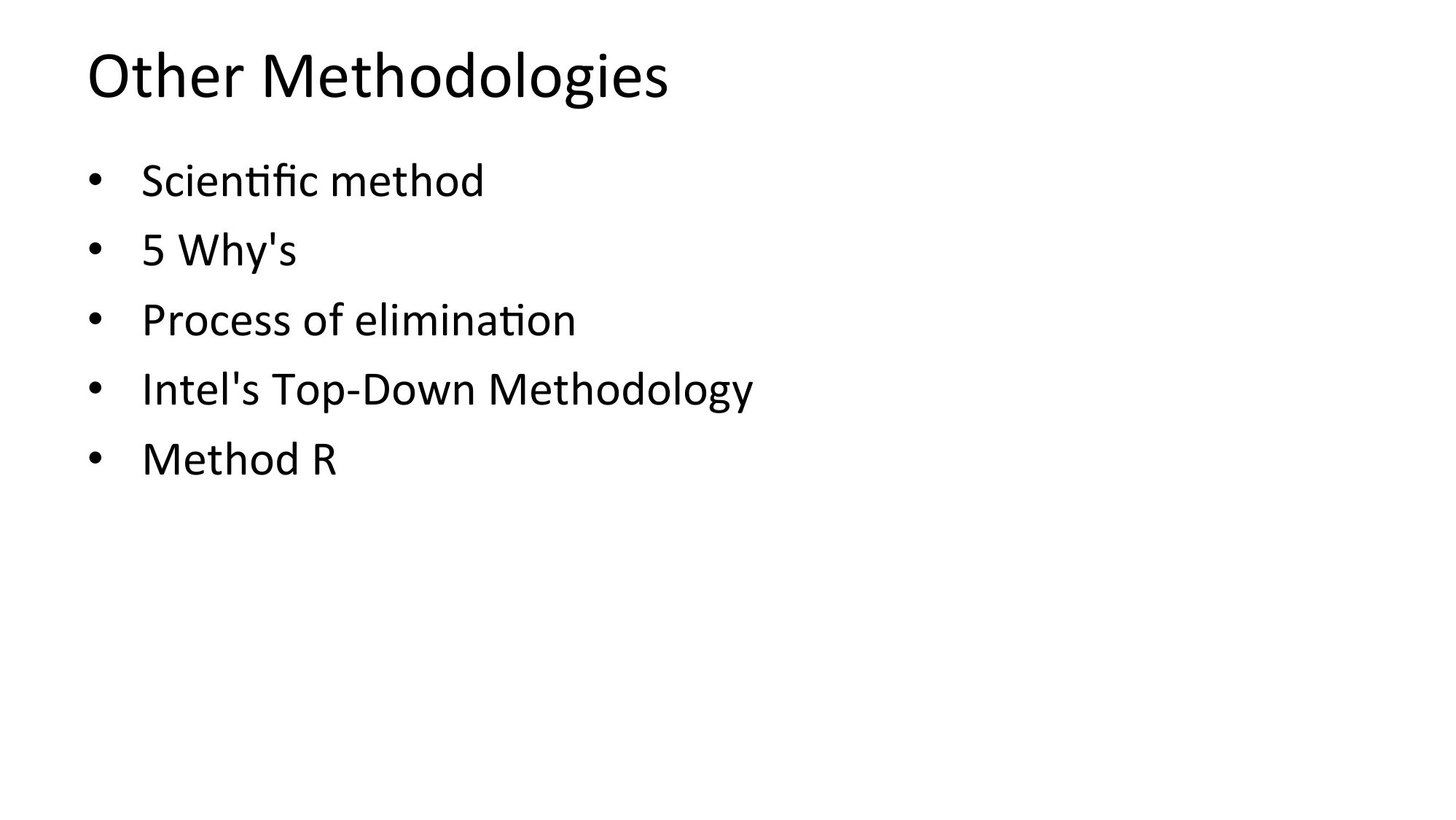 Other Methodologies ScienNfic method 5 Why's Process of eliminaNon Intel's Top-Down Methodology Method Rslide 57: