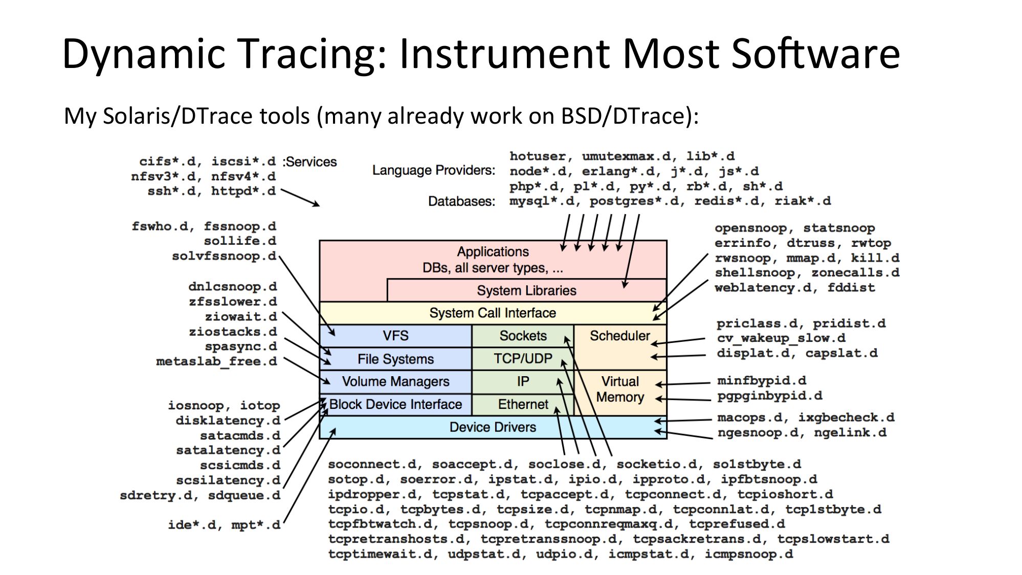 Dynamic Tracing: Instrument Most SoRware My Solaris/DTrace tools (many already work on BSD/DTrace):slide 61: