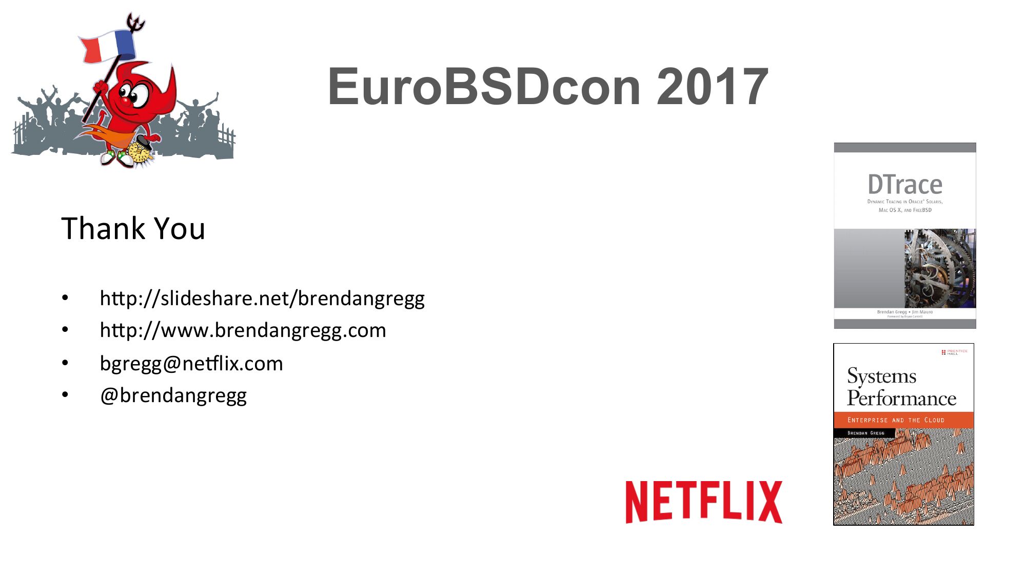 EuroBSDcon 2017 Thank You hjp://slideshare.net/brendangregg hjp://www.brendangregg.com bgregg@neylix.com @brendangregg