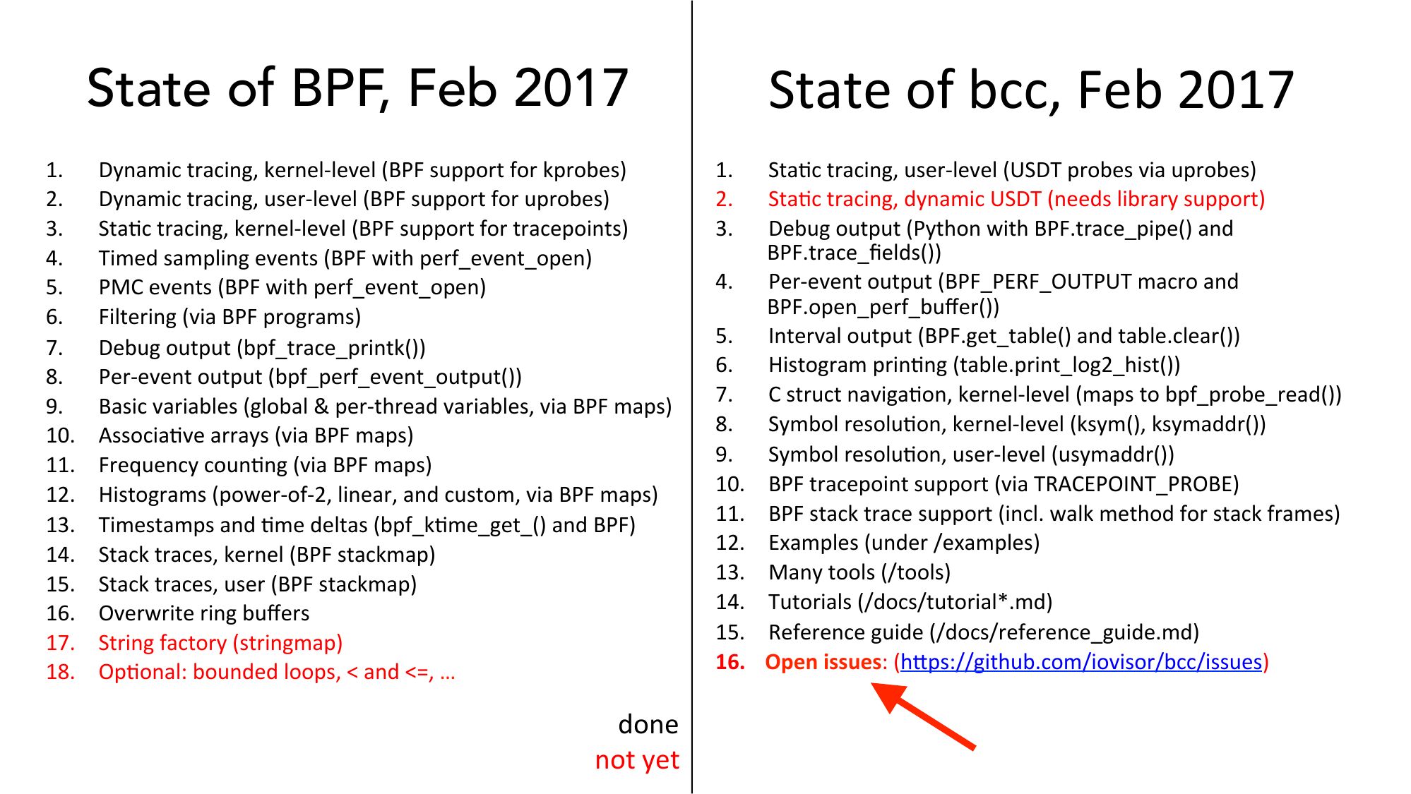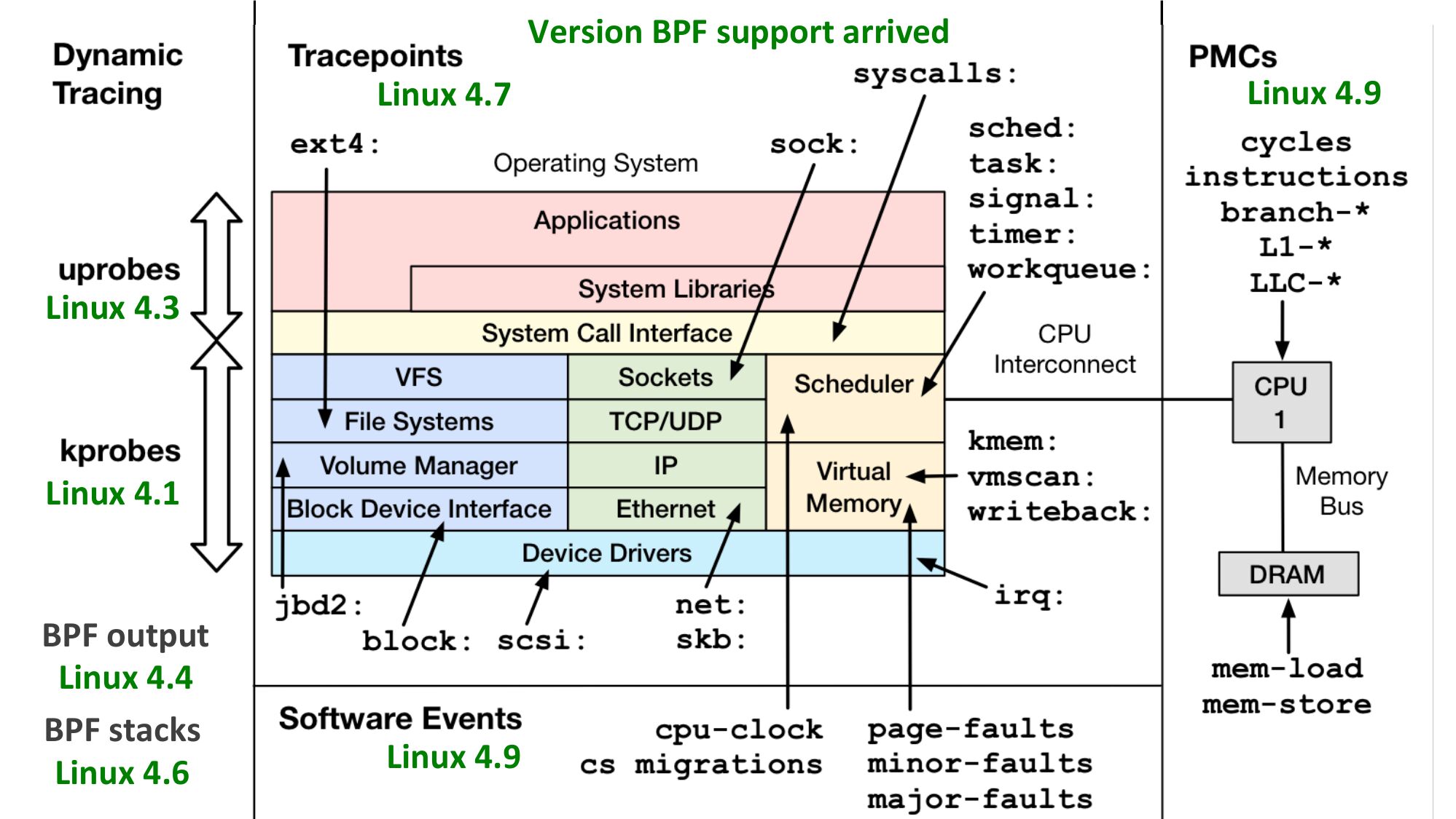 Version BPF support arrived Linux 4.7 Linux 4.3 Linux 4.1 BPF output Linux 4.4 BPF stacks Linux 4.6 Linux 4.9 Linux 4.9slide 8: