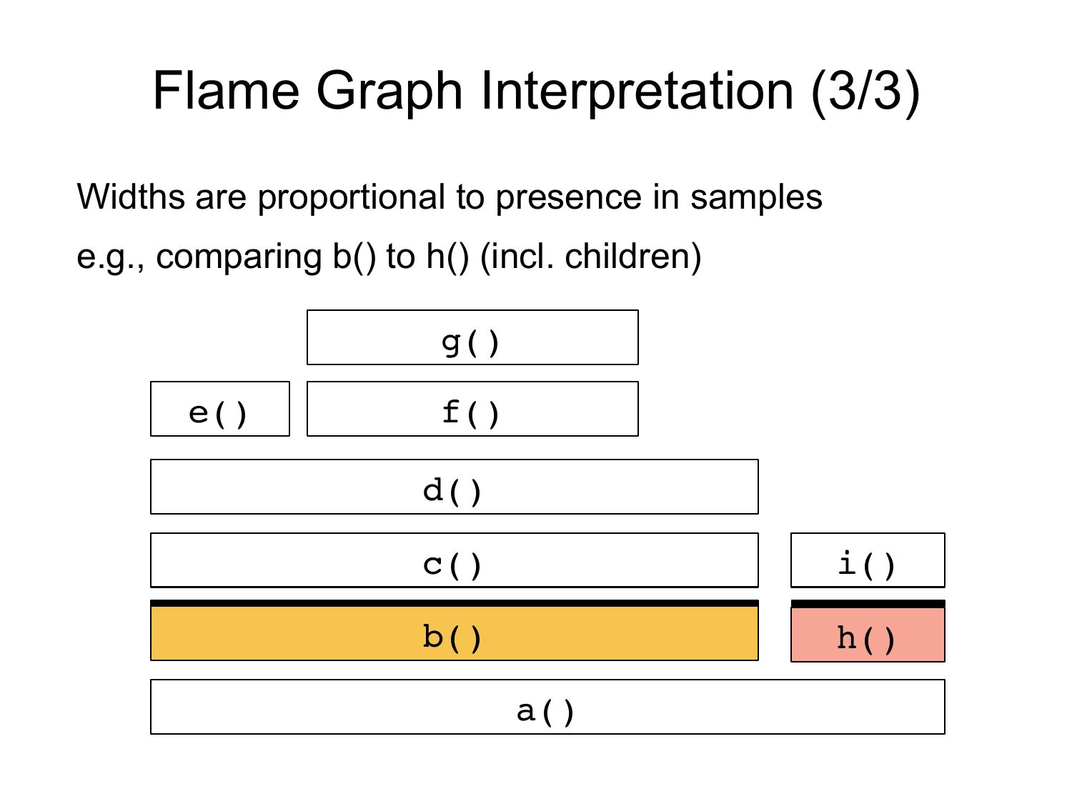 Java Profilers • Visibility – Java method execution – Object usage – GC logs – Custom Java context • Typical problems: – Sampling often happens at safety/yield points (skew) – Method tracing has massive observer effect – Misidentifies RUNNING as on-CPU (e.g., epoll) – Doesn't include or profile GC or JVM CPU time – Tree views not quick (proportional) to comprehend • Inaccurate (skewed) and incomplete profilesslide 13:
