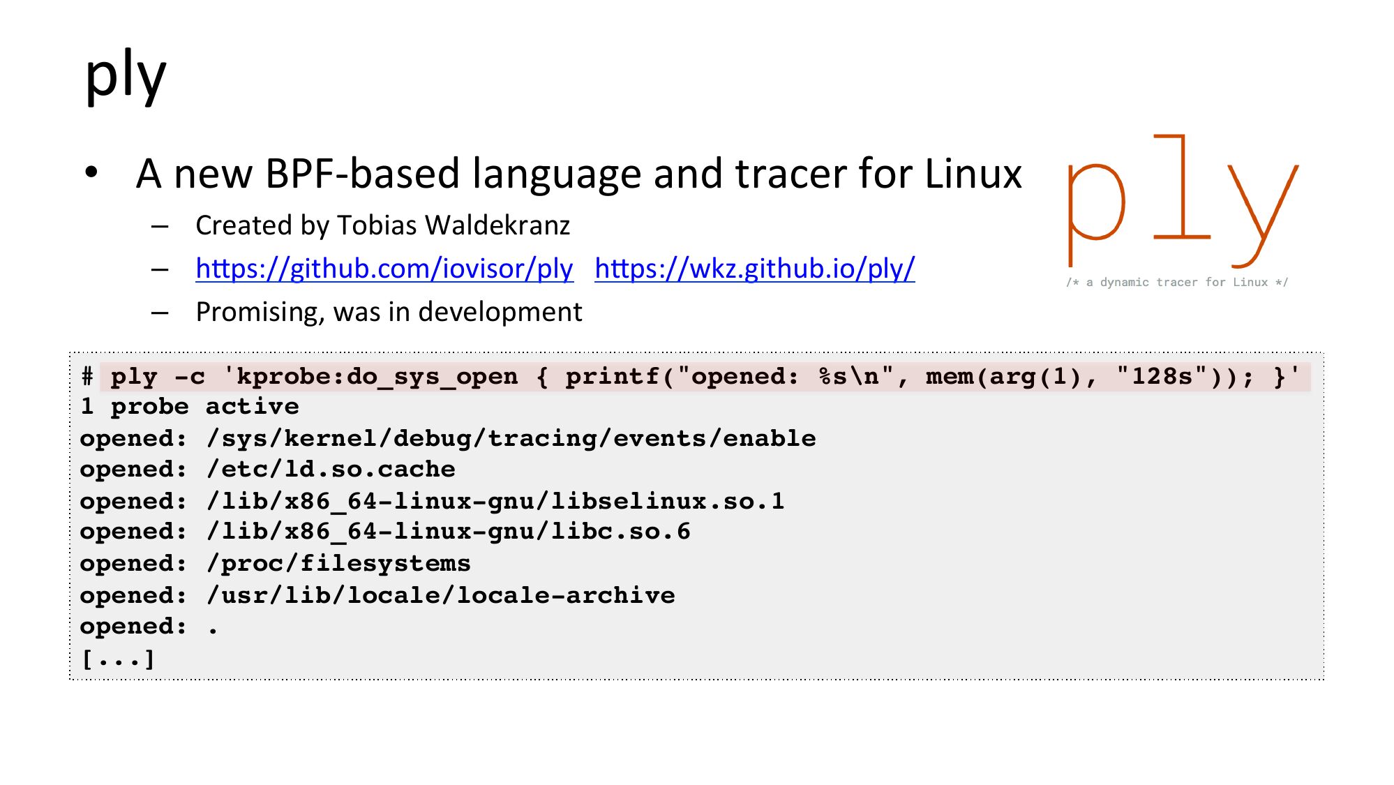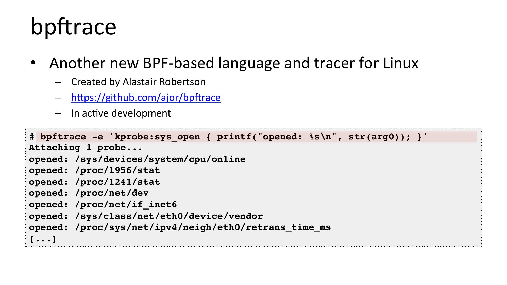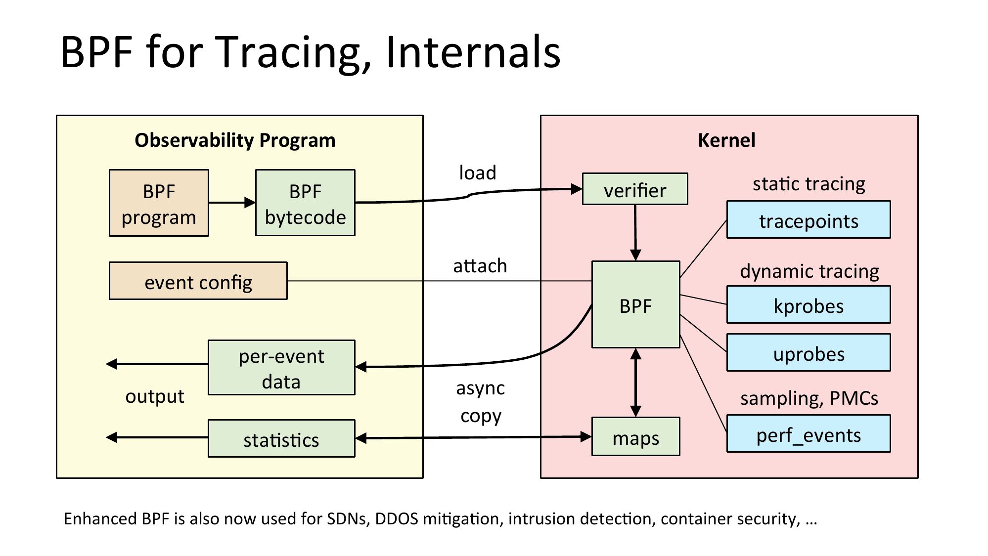 Description: "The in-kernel Berkeley Packet Filter (BPF) has been enhanced in recent kernels to do much more than just filtering packets. It can now run user-defined programs on events, such as on tracepoints, kprobes, uprobes, and perf_events, allowing advanced performance analysis tools to be created. These can be used in production as the BPF virtual machine is sandboxed and will reject unsafe code, and are already in use at Netflix.