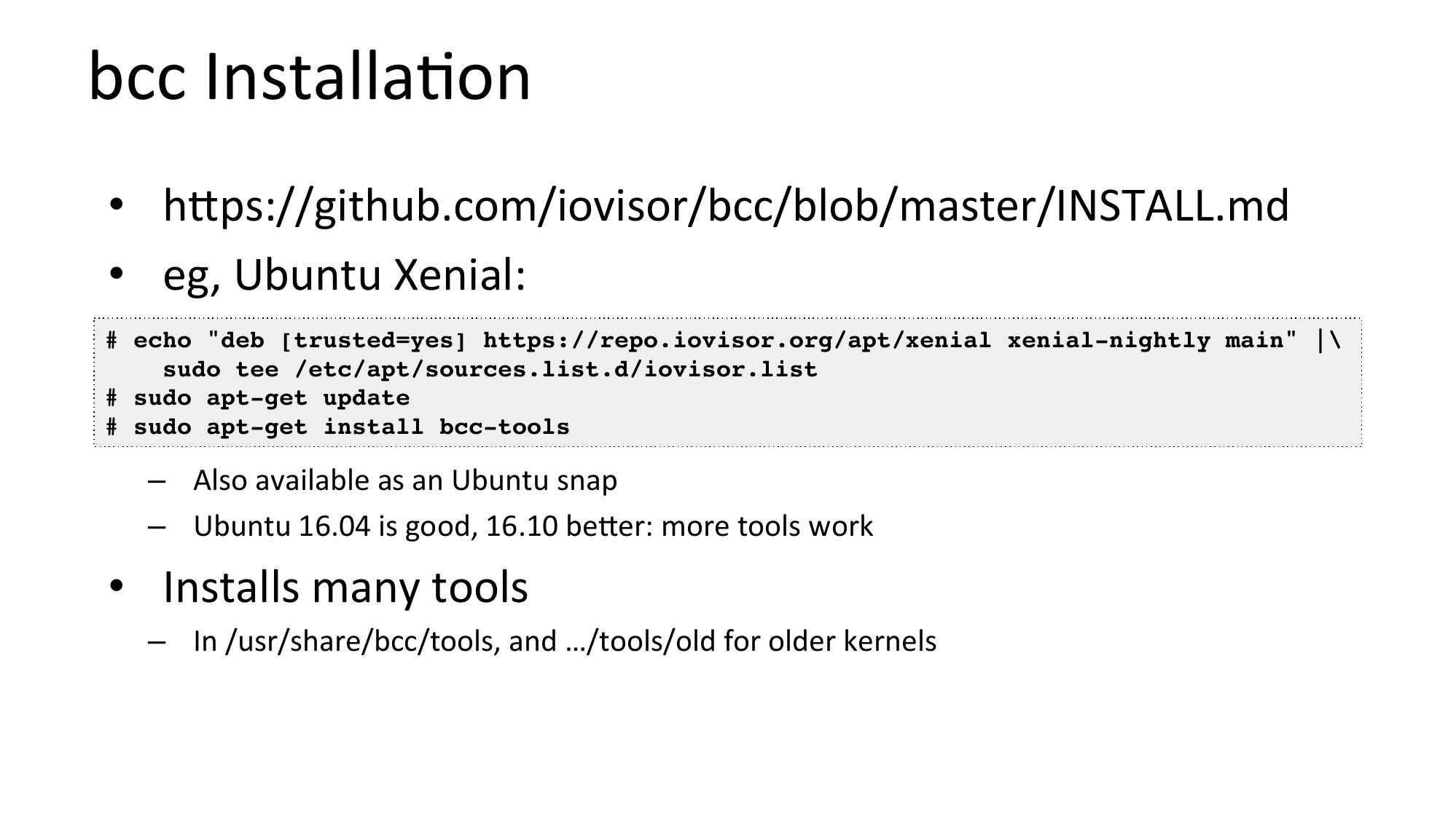 - hcps://github.com/iovisor/bcc/blob/master/INSTALL.md