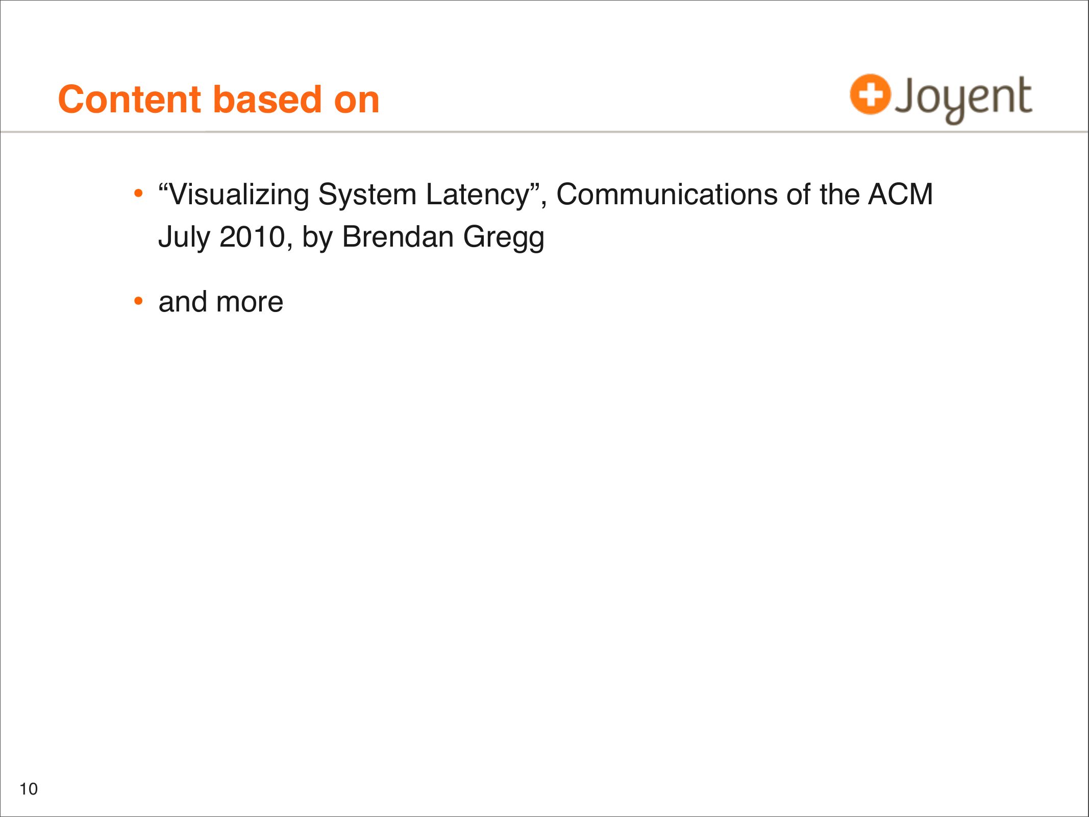 • 2010; Joyent; Bryan Cantrill, Dave Pacheco, Brendan Gregg