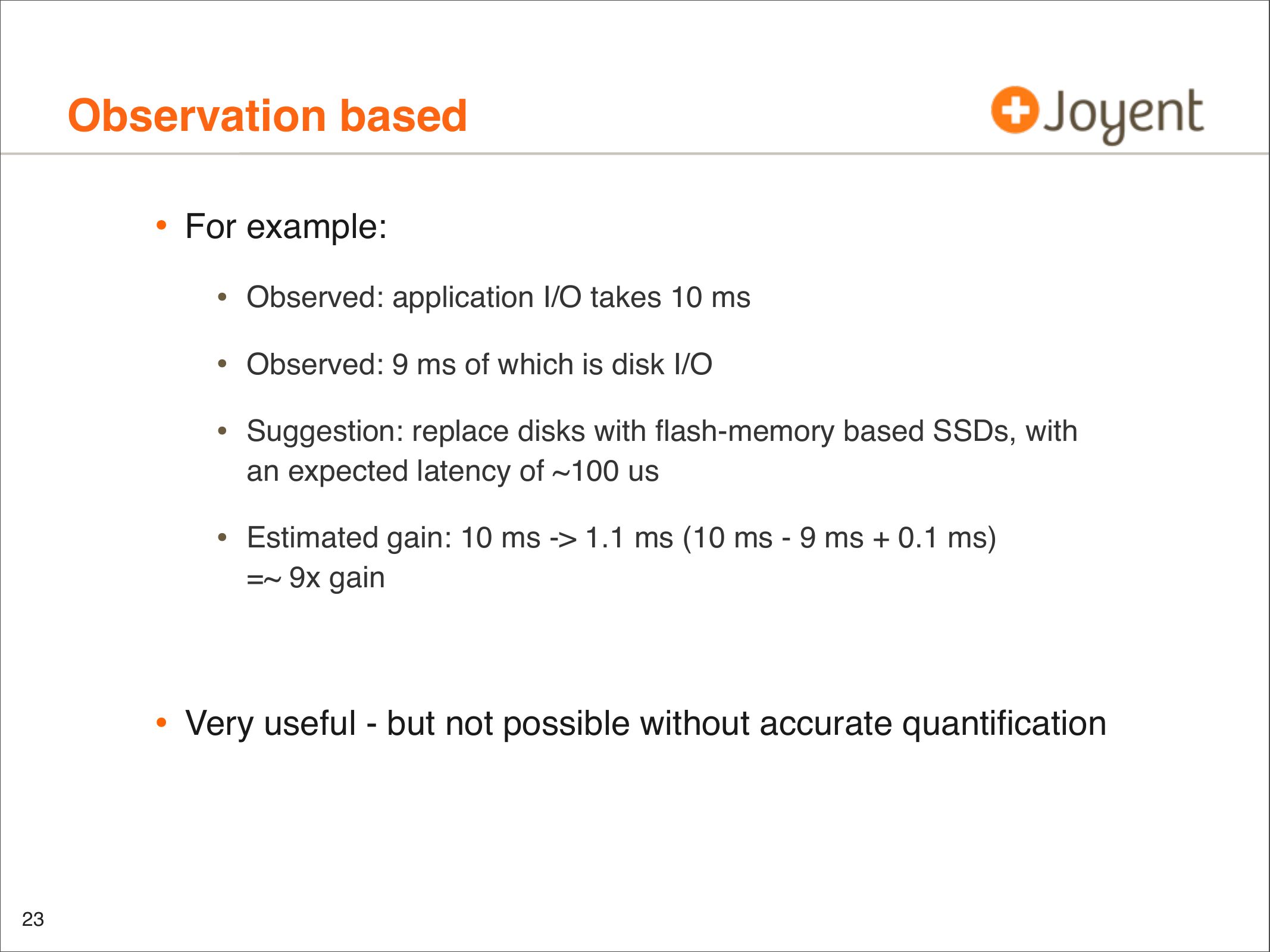 • Targeted observability (DTrace) can be used to fetch this