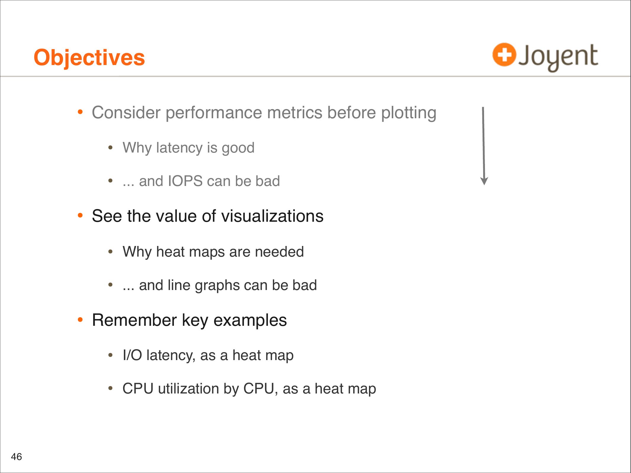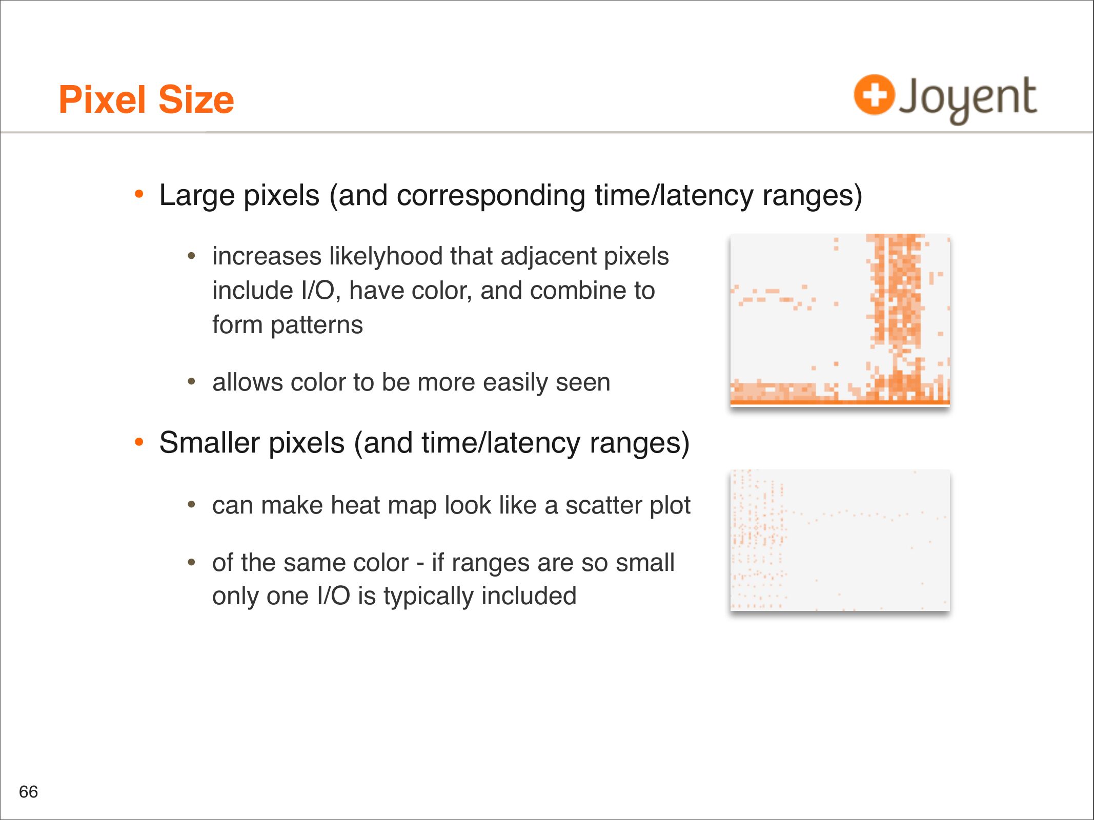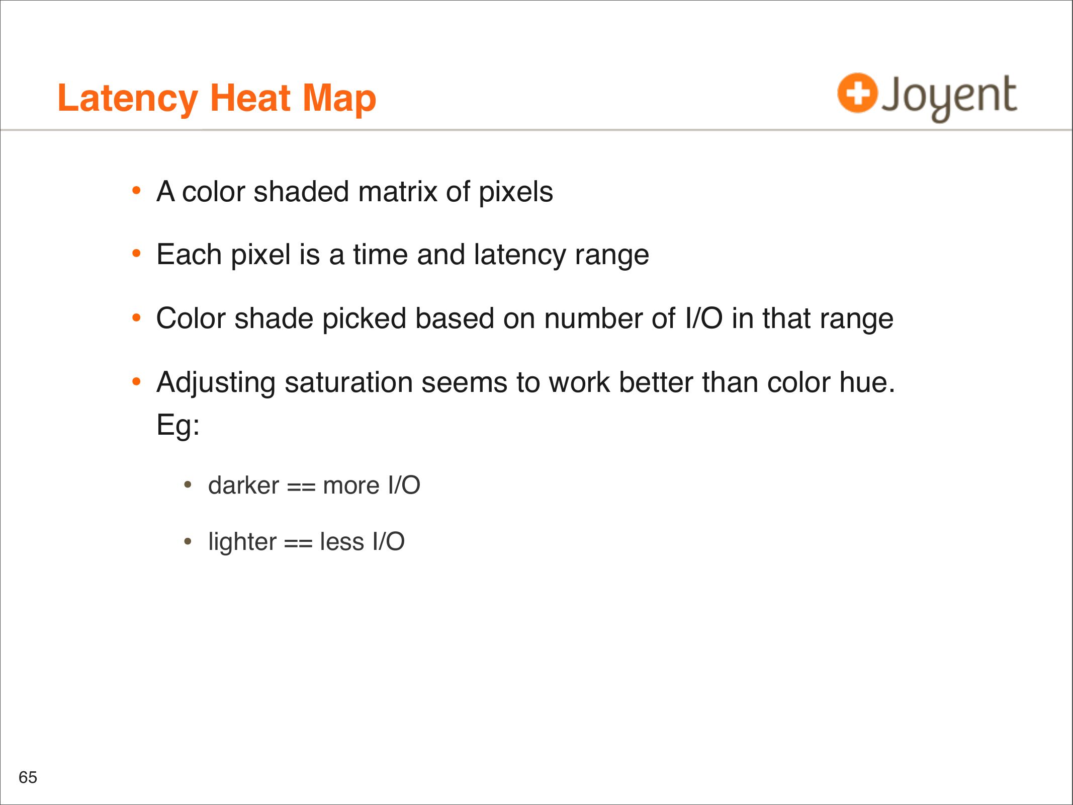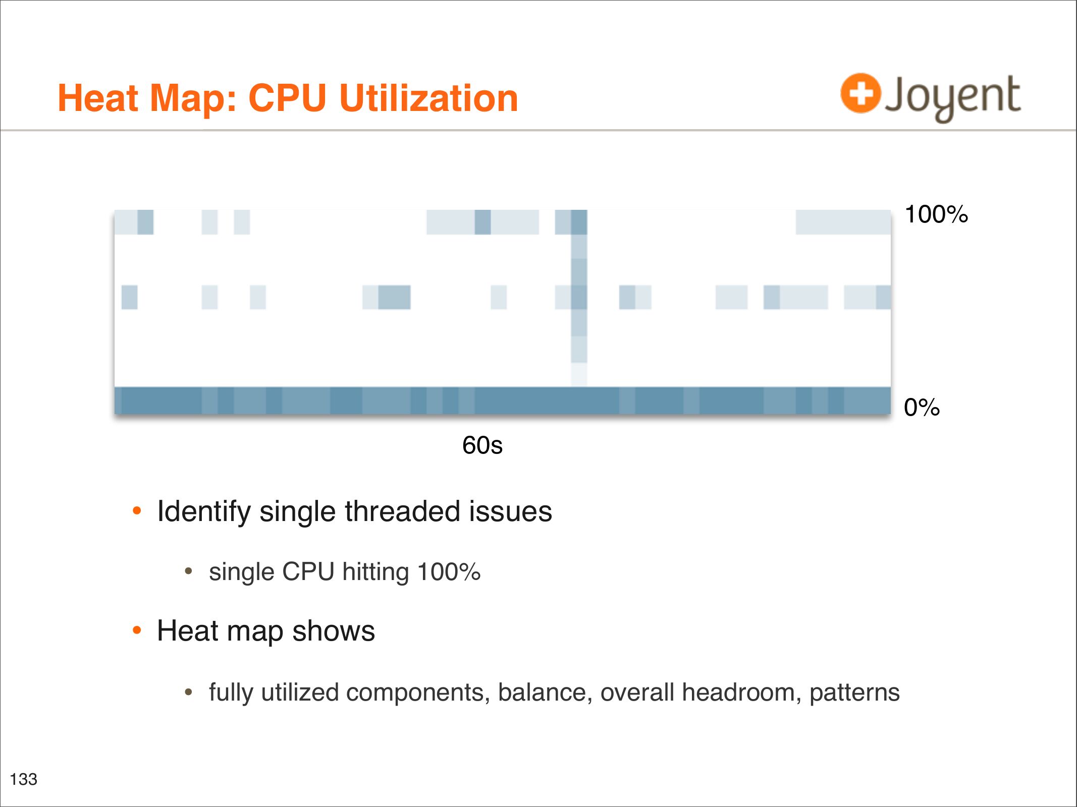 Description: "Visualizations that include heat maps can be an effective way to present performance data: I/O latency, resource utilization, and more. Patterns can emerge that would be difficult to notice from columns of numbers or line graphs, which are revealing previously unknown behavior. These visualizations are used in a product as a replacement for traditional metrics such as %CPU and are allowing end users to identify more issues much more easily (and some issues are becoming nearly impossible to identify with tools such as vmstat(1)). This talk covers what has been learned, crazy heat map discoveries, and thoughts for future applications beyond performance analysis."