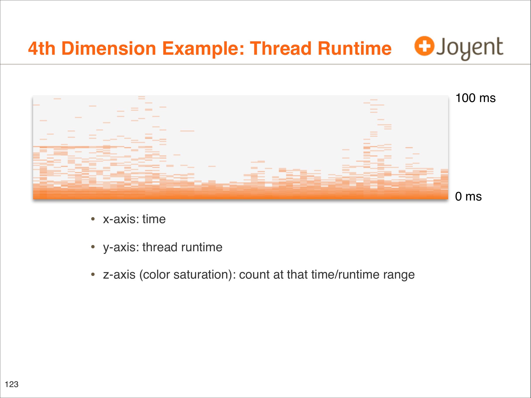 • z-axis (color saturation): count at that time/runtime range