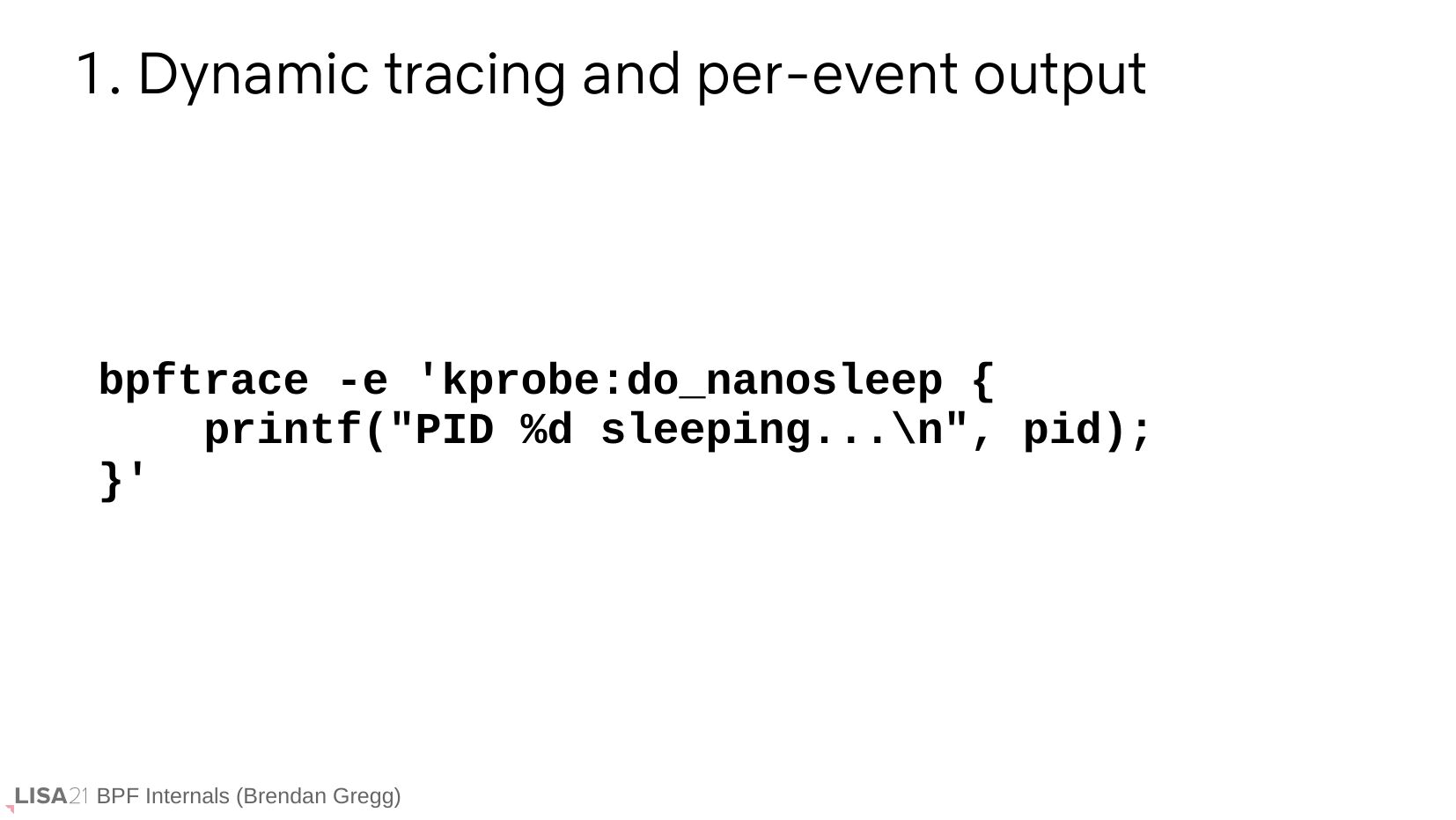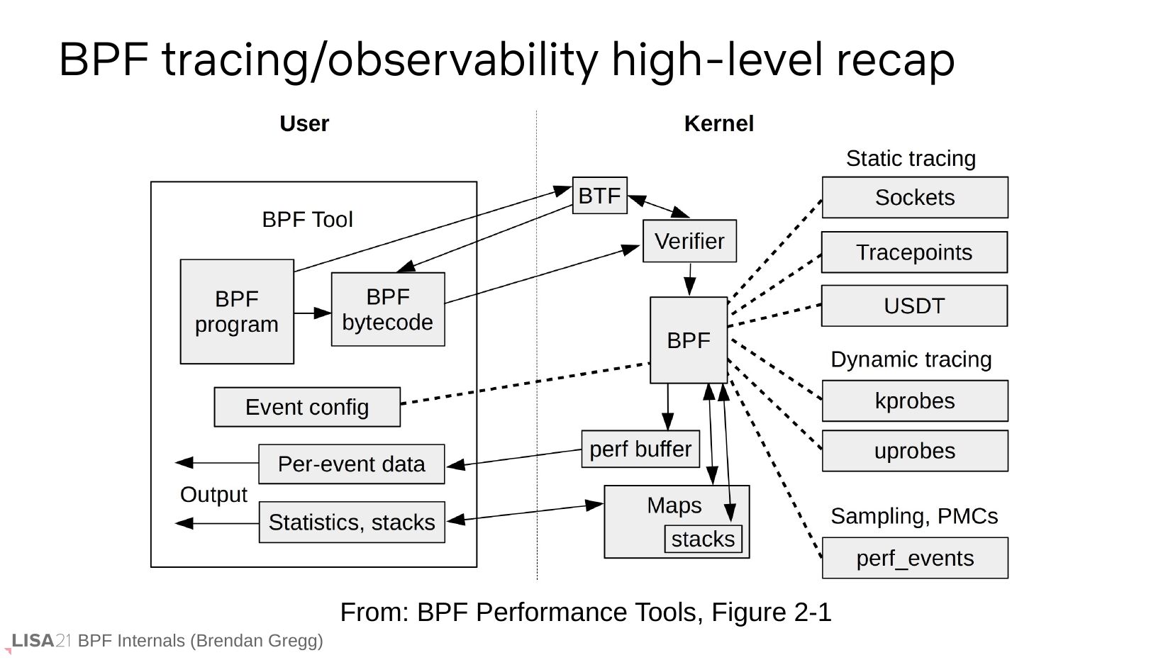 1. Dynamic tracing and per-event output BPF Internals (Brendan Gregg)slide 17: