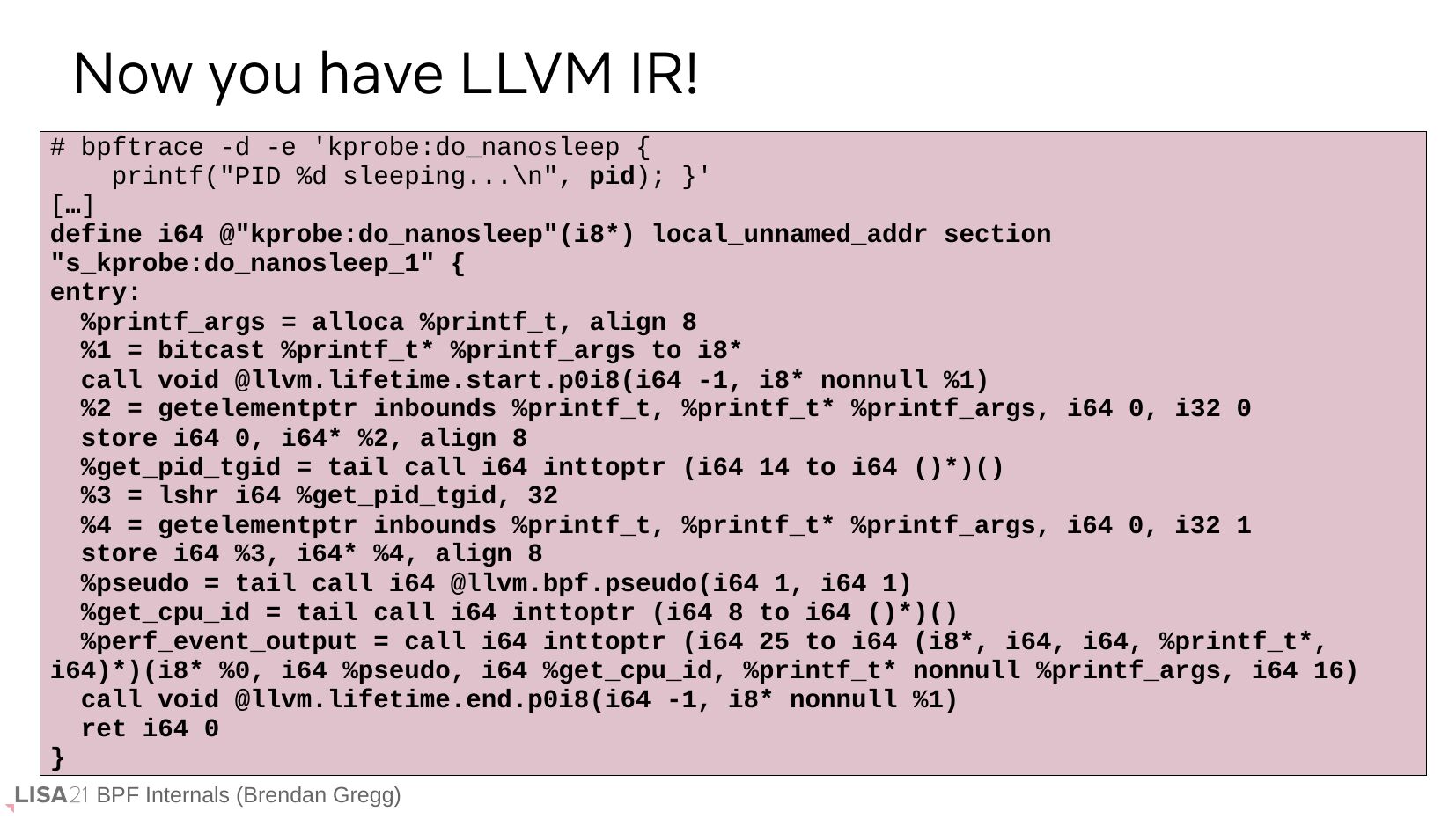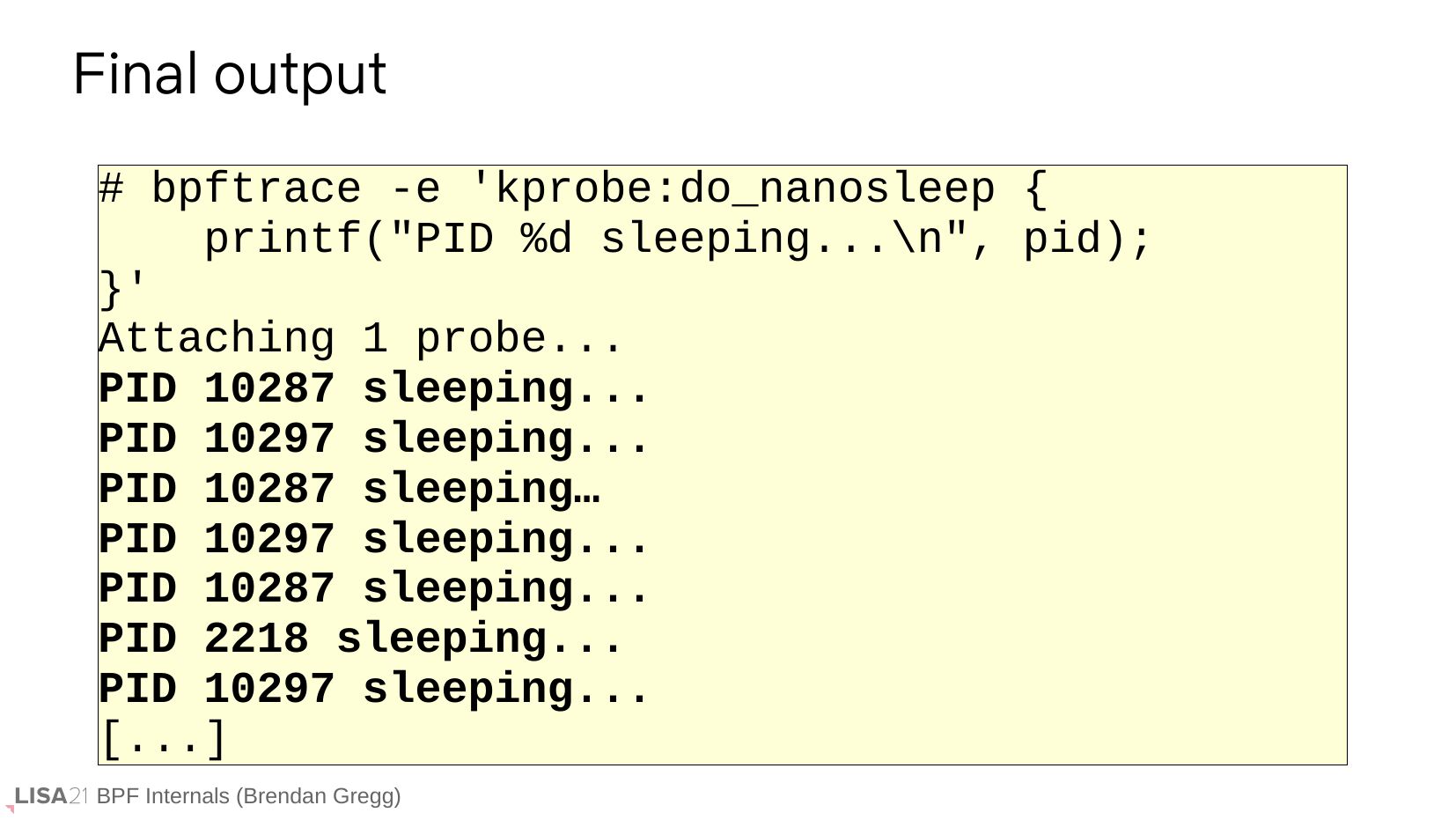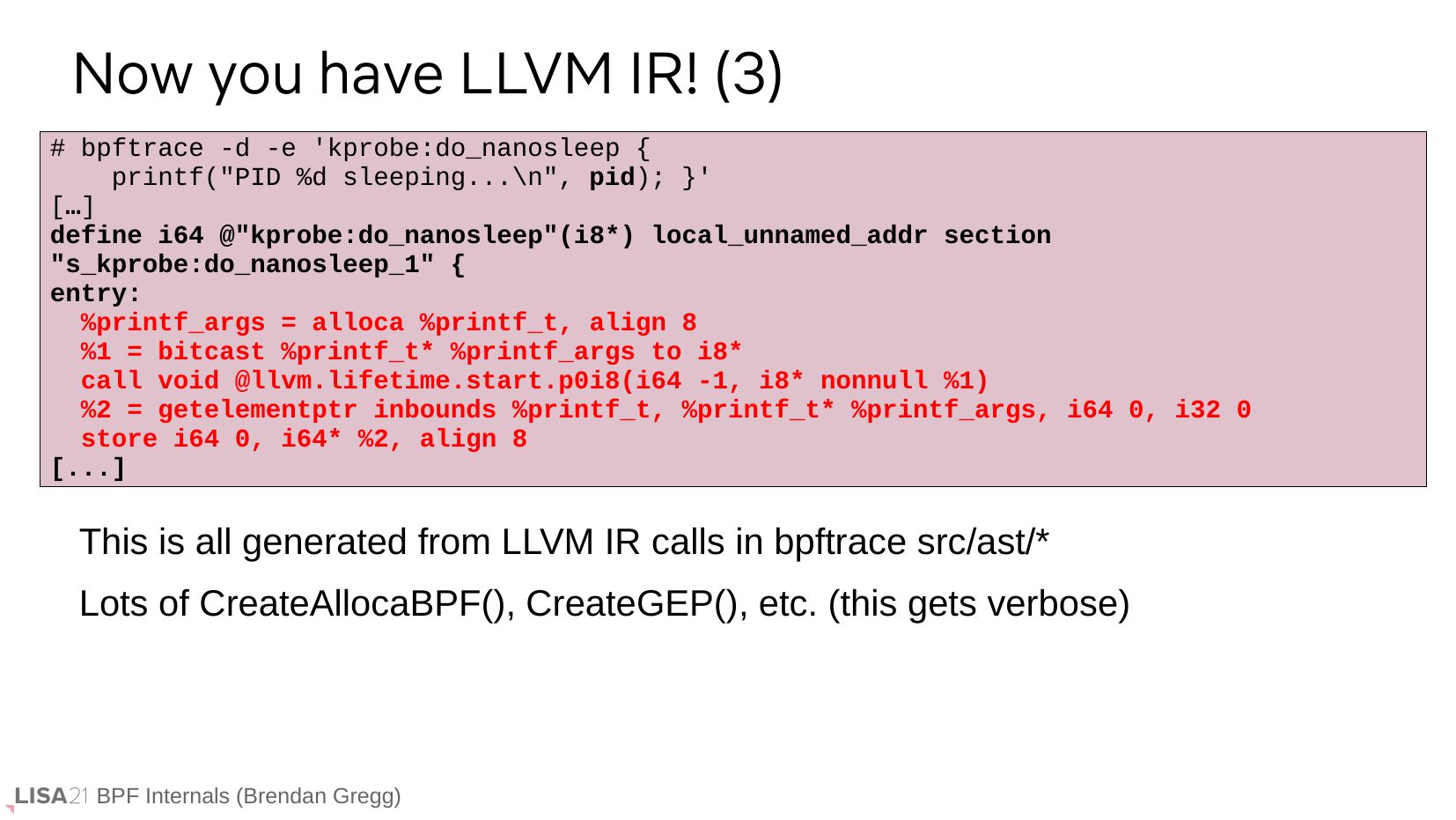 slide 20:bpftrace mid-level internals BPF Internals (Brendan Gregg)slide 21: