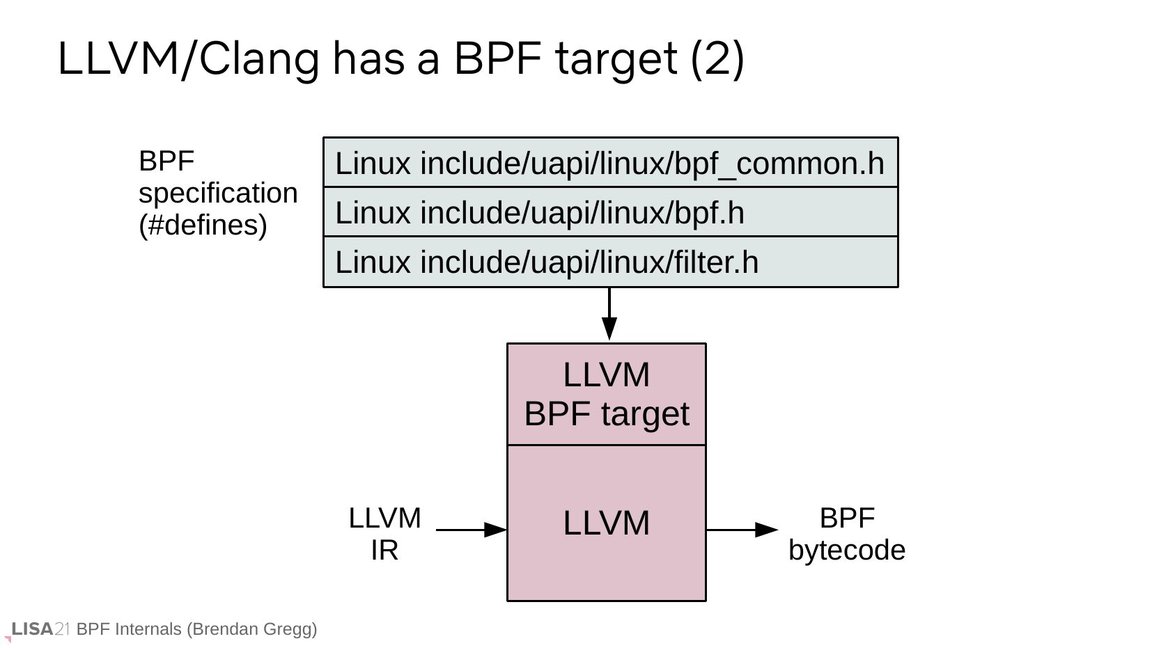 BPF 2021 BPF is now a technology name (like LLVM) Some still call it eBPF A generic in-kernel execution environment User-defined programs Limited & secure kernel access A new type of software BPF Internals (Brendan Gregg)slide 8: