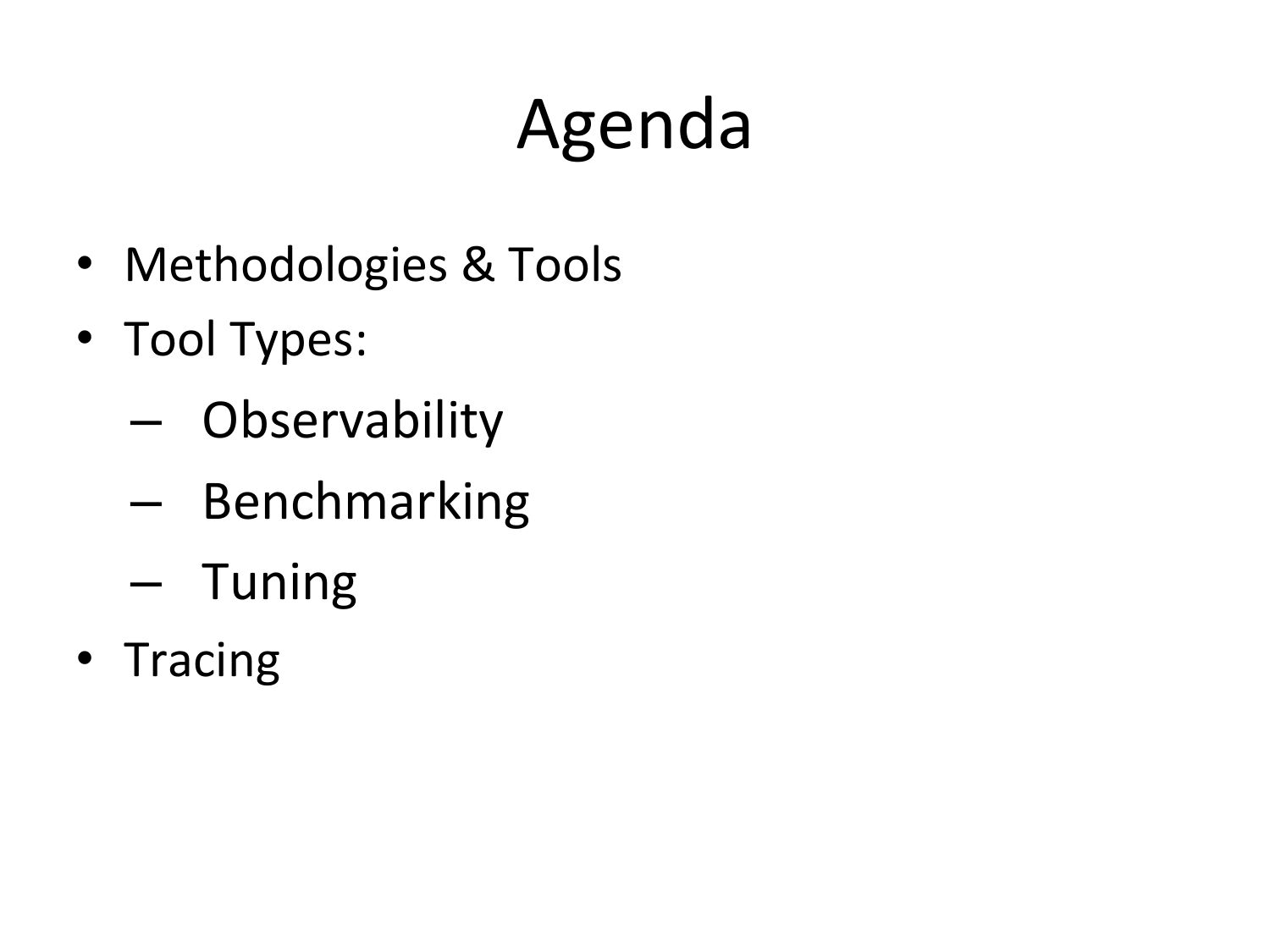 Agenda • Methodologies & Tools • Tool Types: – Observability – Benchmarking – Tuning • Tracingslide 6: