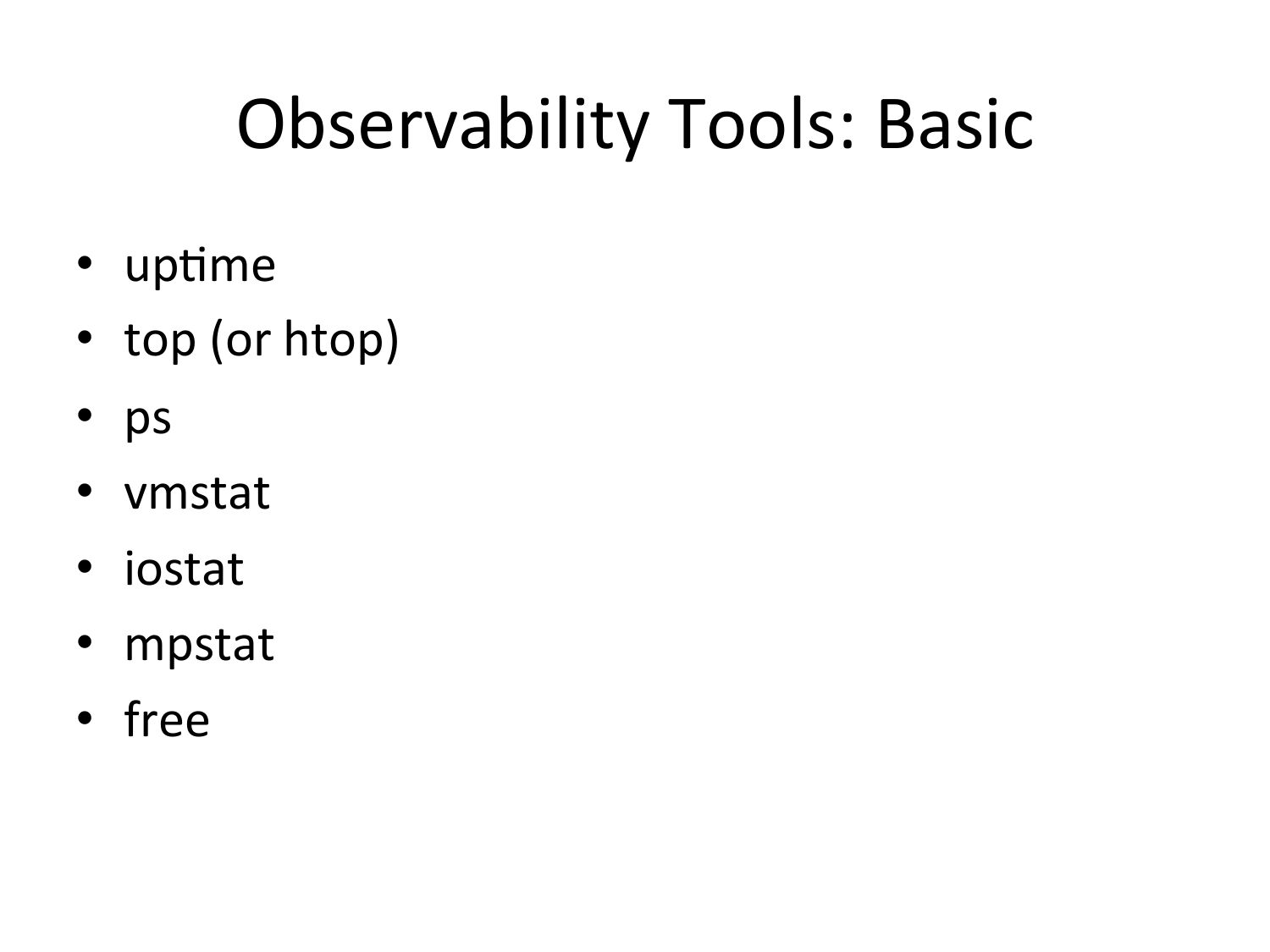 Observability Tools: Basic • upVme • top (or htop) • ps • vmstat • iostat • mpstat • freeslide 15: