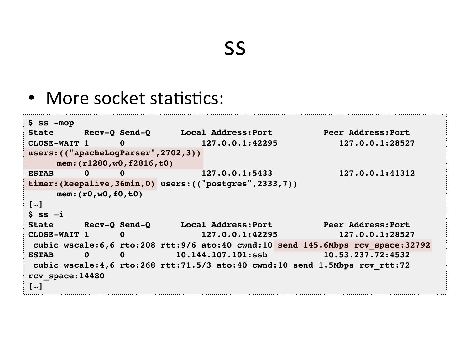 $ ss -mop!