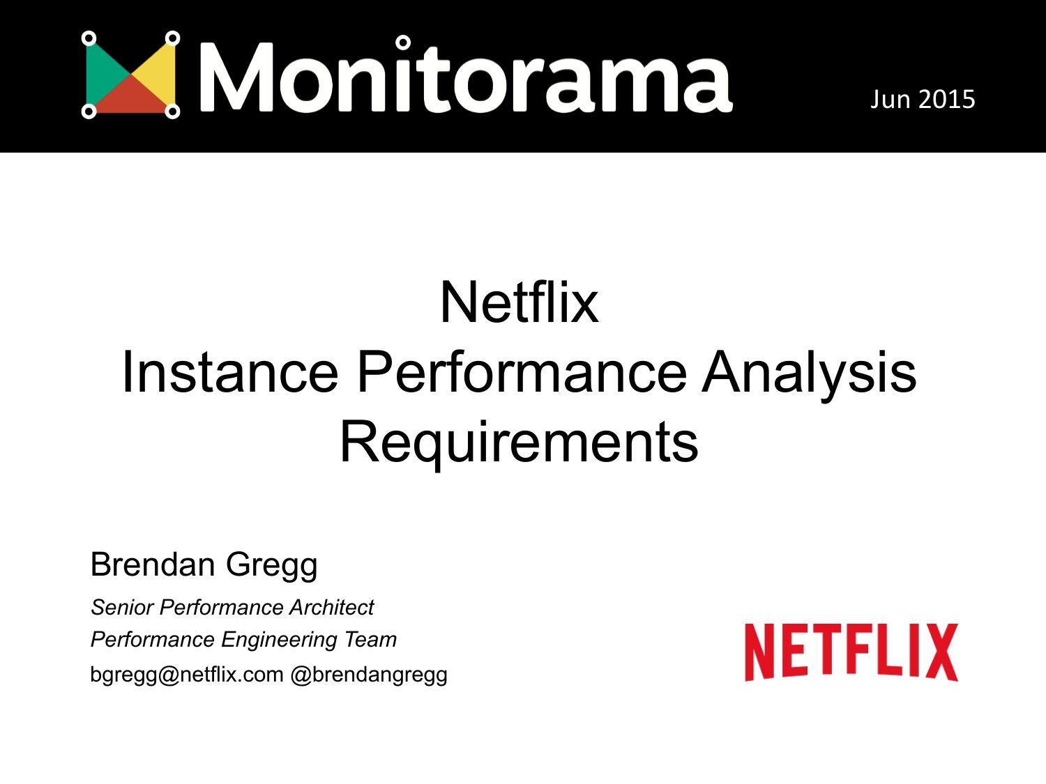 Jun 2015 Netflix Instance Performance Analysis Requirements Brendan Gregg Senior Performance Architect Performance Engineering Team bgregg@netflix.com @brendangreggslide 2: