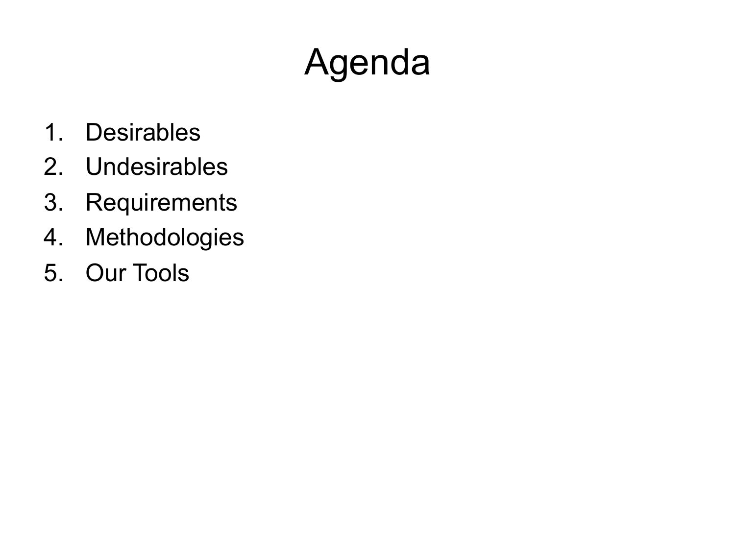 Agenda Desirables Undesirables Requirements Methodologies Our Toolsslide 7: