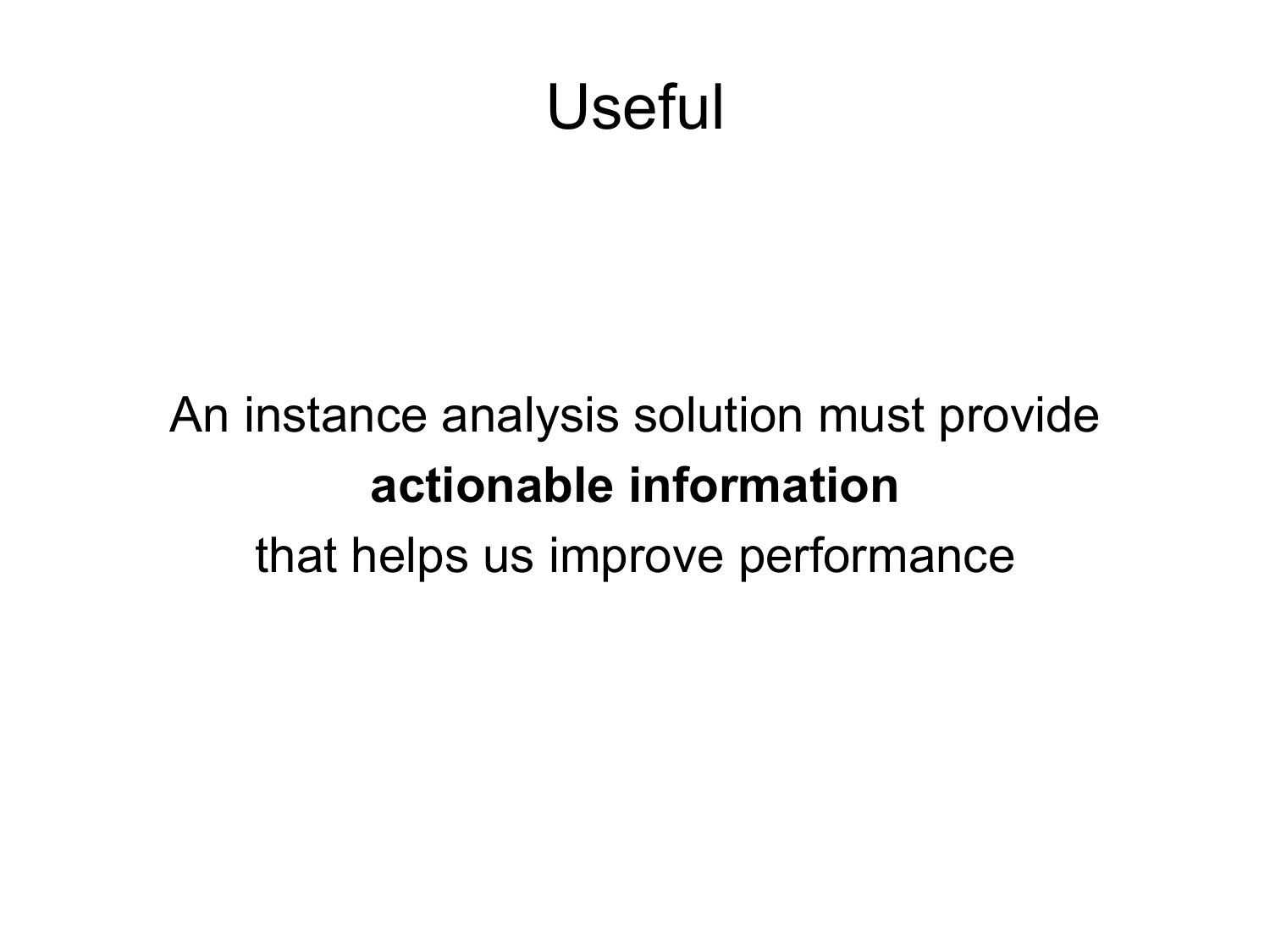 Useful An instance analysis solution must provide actionable information that helps us improve performanceslide 35:
