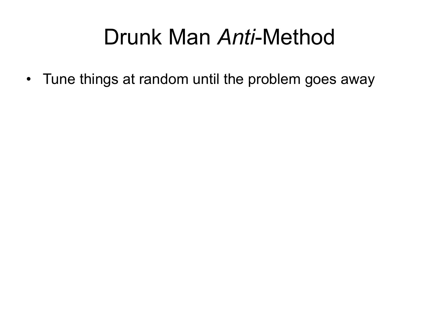 Drunk Man Anti-Method • Tune things at random until the problem goes awayslide 38: