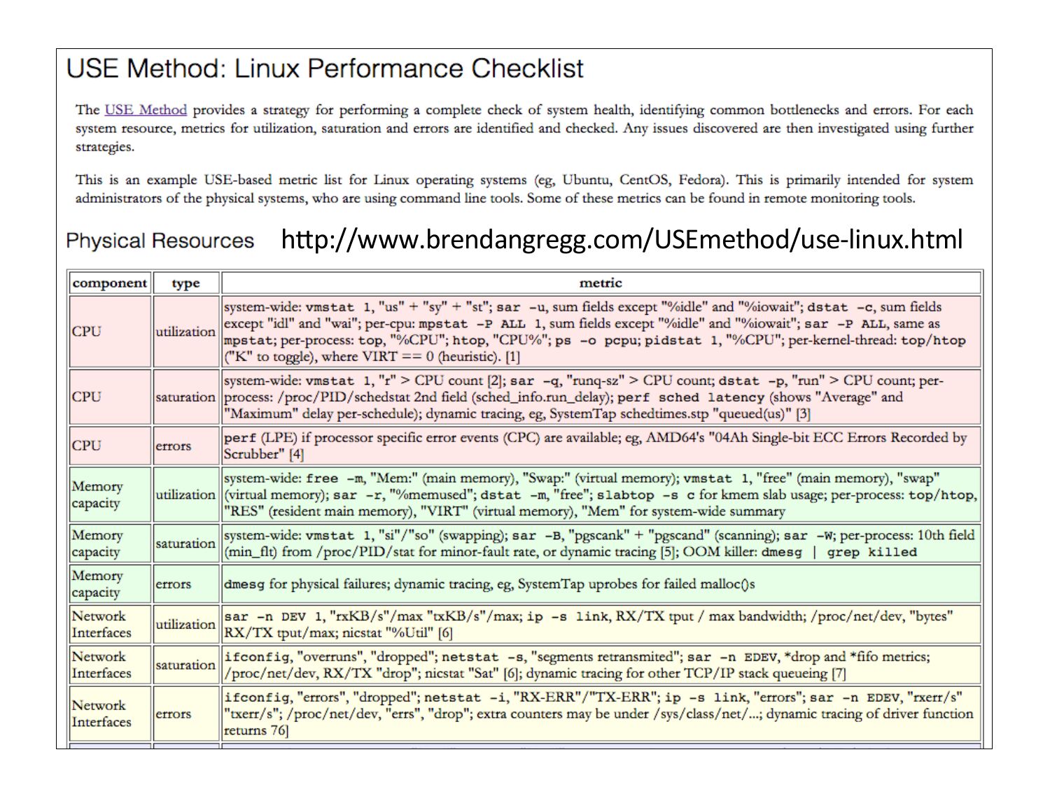 hXp://www.brendangregg.com/USEmethod/use-‐linux.htmlslide 46: