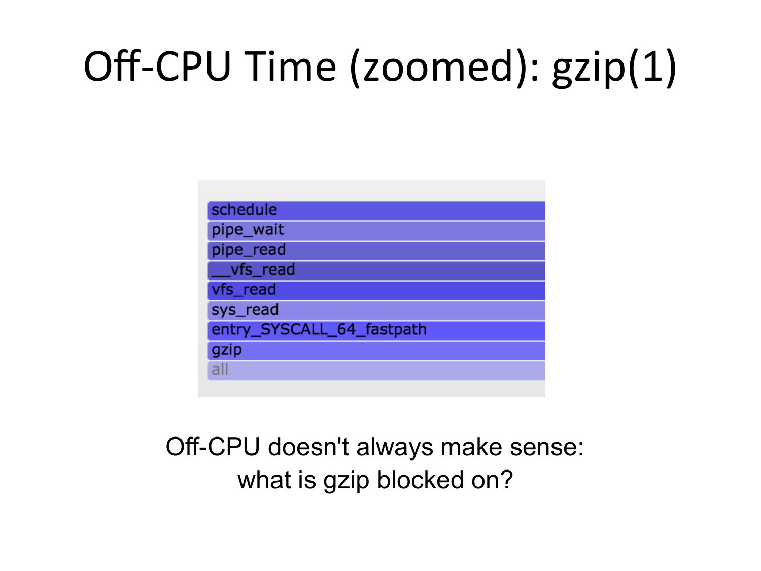 Off-‐CPU Time (zoomed): gzip(1) Off-CPU doesn't always make sense: what is gzip blocked on?slide 21: