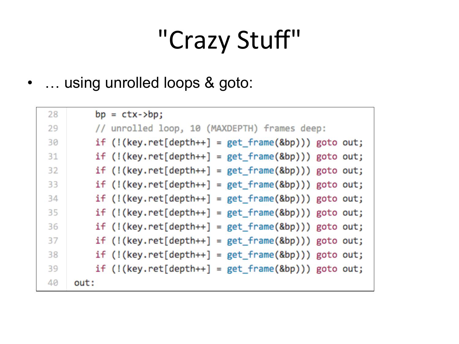 "Crazy Stuff" • … using unrolled loops & goto:slide 41: