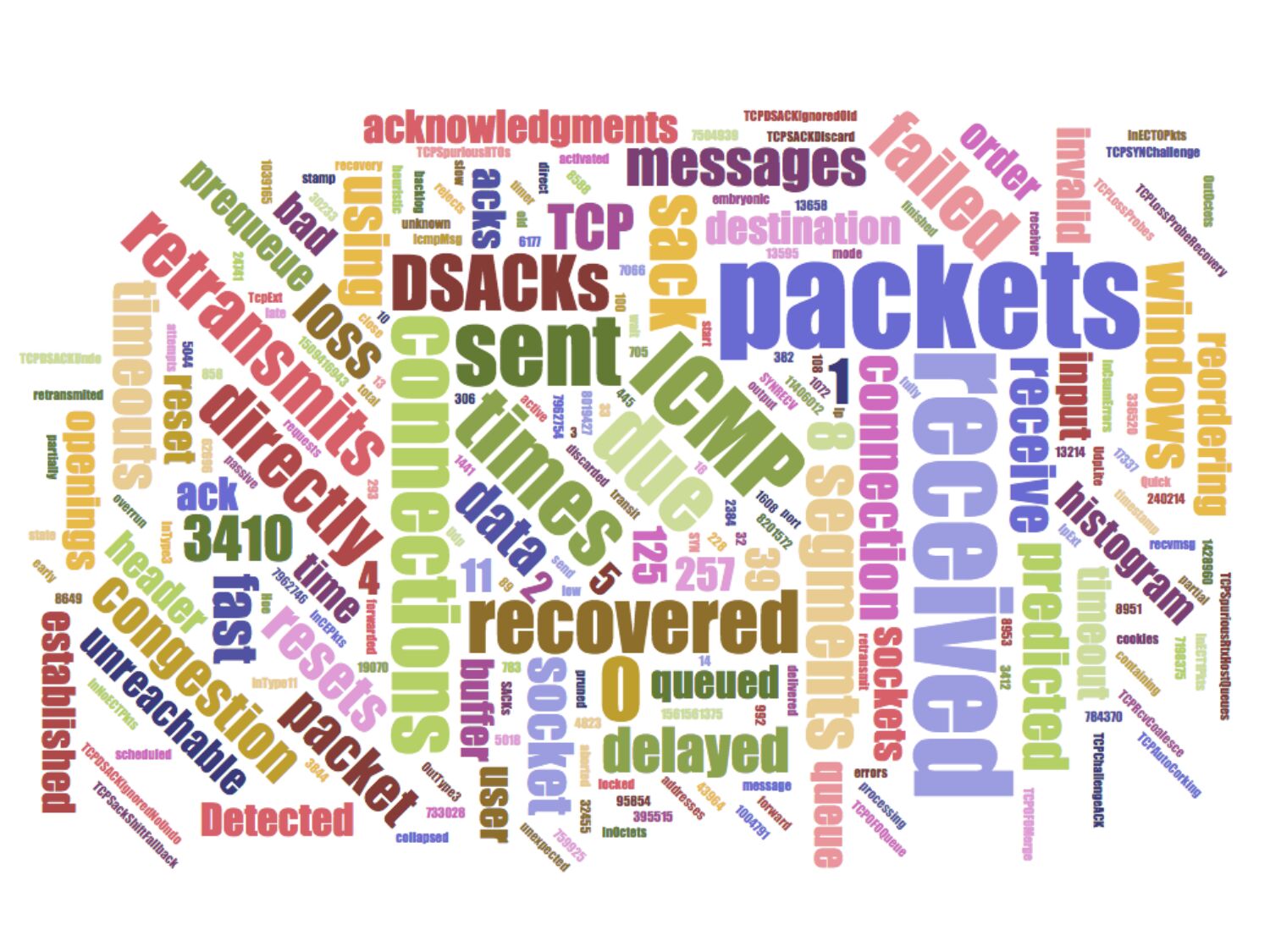 More Tools • eg, netstat(8)… $ netstat -s Ip: 7962754 total packets received 8 with invalid addresses 0 forwarded 0 incoming packets discarded 7962746 incoming packets delivered 8019427 requests sent out Icmp: 382 ICMP messages received 0 input ICMP message failed. ICMP input histogram: destination unreachable: 125 timeout in transit: 257 3410 ICMP messages sent 0 ICMP messages failed ICMP output histogram: destination unreachable: 3410 IcmpMsg: InType3: 125 InType11: 257 OutType3: 3410 Tcp: 17337 active connections openings 395515 passive connection openings 8953 failed connection attempts 240214 connection resets received 3 connections established 7198375 segments received 7504939 segments send out 62696 segments retransmited 10 bad segments received. 1072 resets sent InCsumErrors: 5 Udp: 759925 packets received 3412 packets to unknown port received. 0 packet receive errors 784370 packets sent UdpLite: TcpExt: 858 invalid SYN cookies received 8951 resets received for embryonic SYN_RECV sockets 14 packets pruned from receive queue because of socket buffer overrun 6177 TCP sockets finished time wait in fast timer 293 packets rejects in established connections because of timestamp 733028 delayed acks sent 89 delayed acks further delayed because of locked socket Quick ack mode was activated 13214 times 336520 packets directly queued to recvmsg prequeue. 43964 packets directly received from backlog 11406012 packets directly received from prequeue 1039165 packets header predicted 7066 packets header predicted and directly queued to user 1428960 acknowledgments not containing data received 1004791 predicted acknowledgments 1 times recovered from packet loss due to fast retransmit 5044 times recovered from packet loss due to SACK data 2 bad SACKs received Detected reordering 4 times using SACK Detected reordering 11 times using time stamp 13 congestion windows fully recovered 11 congestion windows partially recovered using Hoe heuristic TCPDSACKUndo: 39 2384 congestion windows recovered after partial ack 228 timeouts after SACK recovery 100 timeouts in loss state 5018 fast retransmits 39 forward retransmits 783 retransmits in slow start 32455 other TCP timeouts TCPLossProbes: 30233 TCPLossProbeRecovery: 19070 992 sack retransmits failed 18 times receiver scheduled too late for direct processing 705 packets collapsed in receive queue due to low socket buffer 13658 DSACKs sent for old packets 8 DSACKs sent for out of order packets 13595 DSACKs received 33 DSACKs for out of order packets received 32 connections reset due to unexpected data 108 connections reset due to early user close 1608 connections aborted due to timeout TCPSACKDiscard: 4 TCPDSACKIgnoredOld: 1 TCPDSACKIgnoredNoUndo: 8649 TCPSpuriousRTOs: 445 TCPSackShiftFallback: 8588 TCPRcvCoalesce: 95854 TCPOFOQueue: 24741 TCPOFOMerge: 8 TCPChallengeACK: 1441 TCPSYNChallenge: 5 TCPSpuriousRtxHostQueues: 1 TCPAutoCorking: 4823 IpExt: InOctets: 1561561375 OutOctets: 1509416943 InNoECTPkts: 8201572 InECT1Pkts: 2 InECT0Pkts: 3844 InCEPkts: 306slide 55: