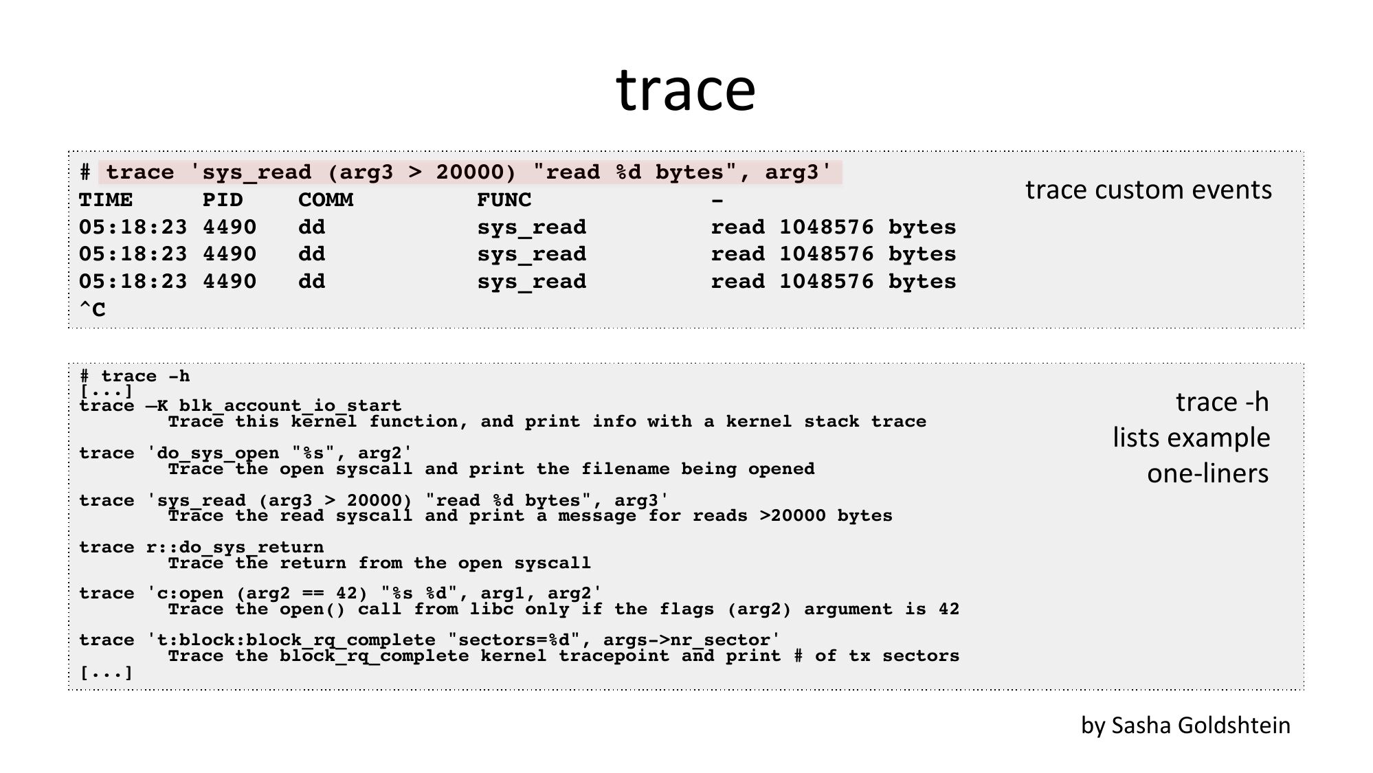 - I'll change your view of Linux tracing: hDps://www.youtube.com/watch?v=GsMs3n8CB6g