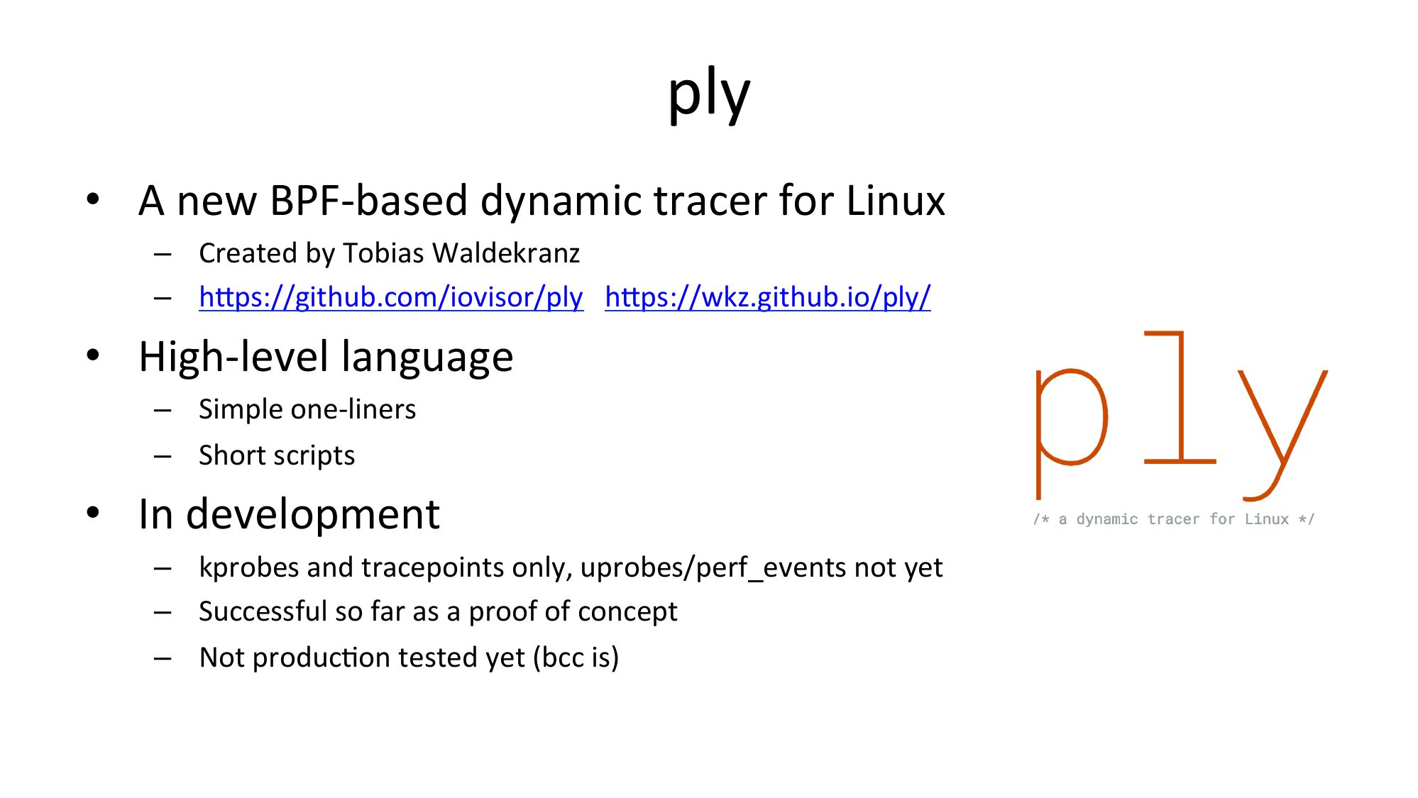 – hDps://github.com/iovisor/ply hDps://wkz.github.io/ply/