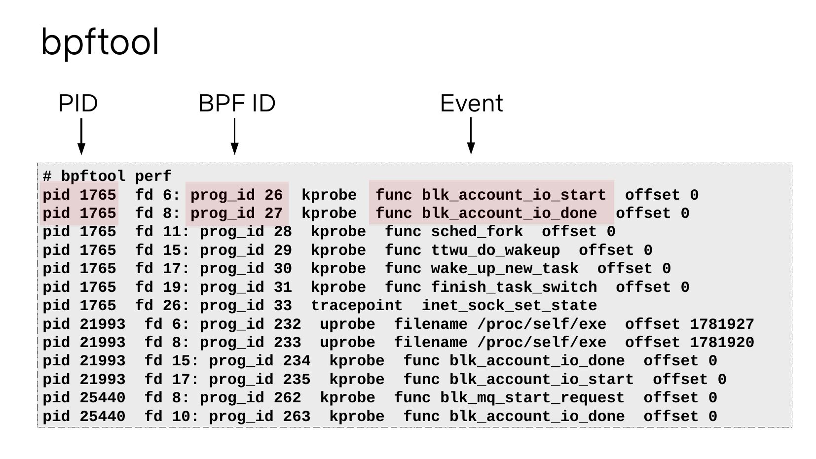 pid 21993 fd 15: prog_id 234 kprobe func blk_account_io_done offset 0