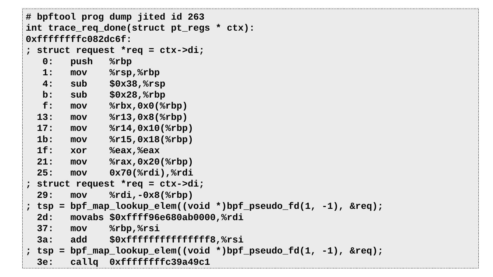 pid 25440 fd 10: prog_id 263 kprobe func blk_account_io_done offset 0