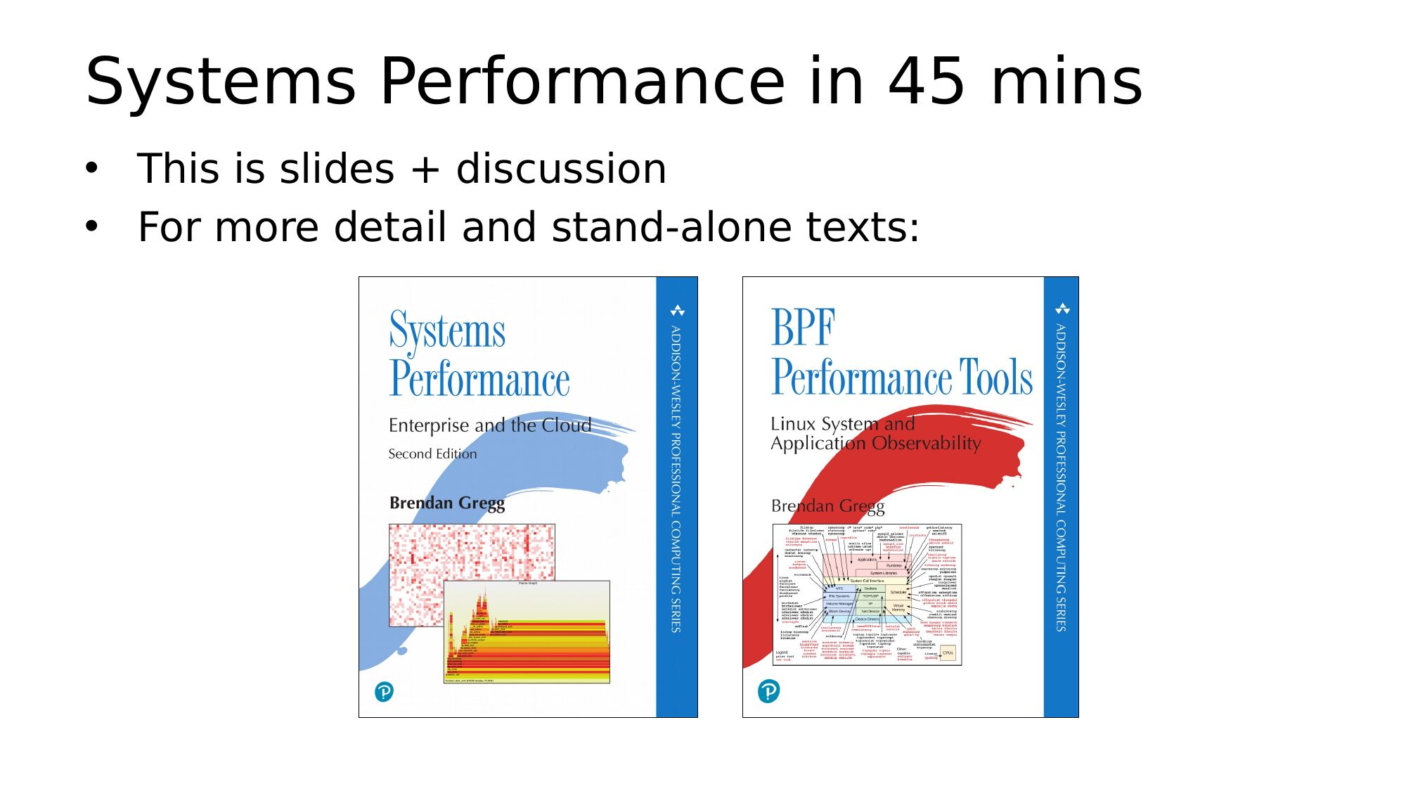 Description: "Systems performance studies the performance of computing systems, including all physical components and the full software stack to help you find performance wins for your application and kernel. However, most of us are not performance or kernel engineers, and have limited time to study this topic. This talk summarizes the topic for everyone, touring six important areas: observability tools, methodologies, benchmarking, profiling, tracing, and tuning. Included are recipes for Linux performance analysis and tuning (using vmstat, mpstat, iostat, etc), overviews of complex areas including profiling (perf_events) and tracing (ftrace, bcc/BPF, and bpftrace/BPF), advice about what is and isn't important to learn, and case studies to see how it is applied. This talk is aimed at everyone: developers, operations, sysadmins, etc, and in any environment running Linux, bare metal or the cloud."