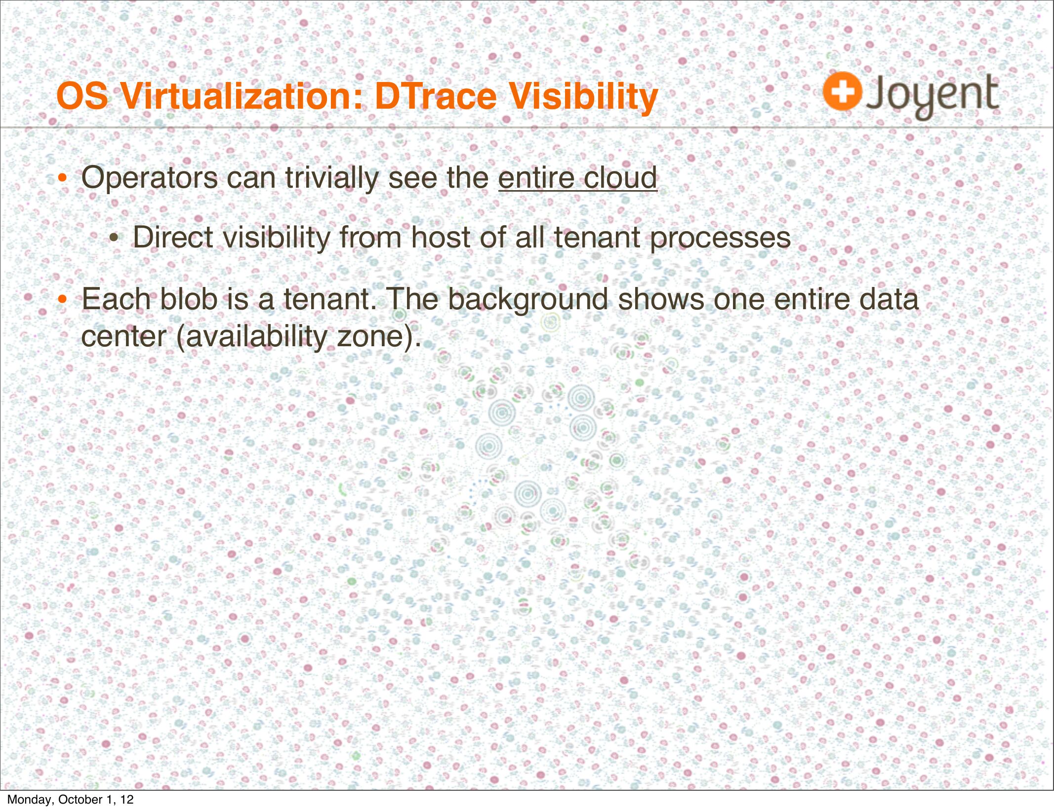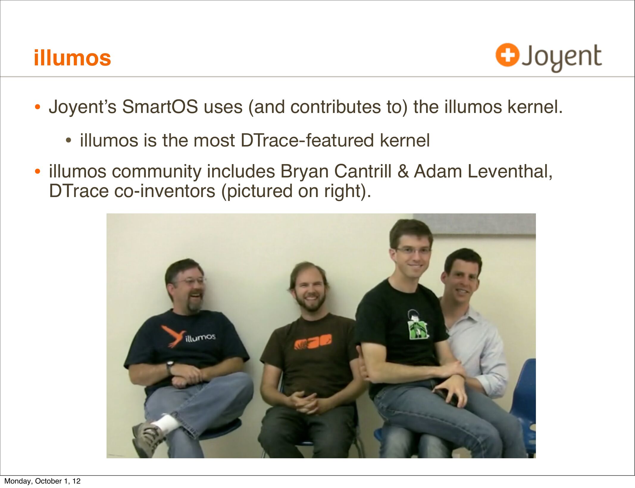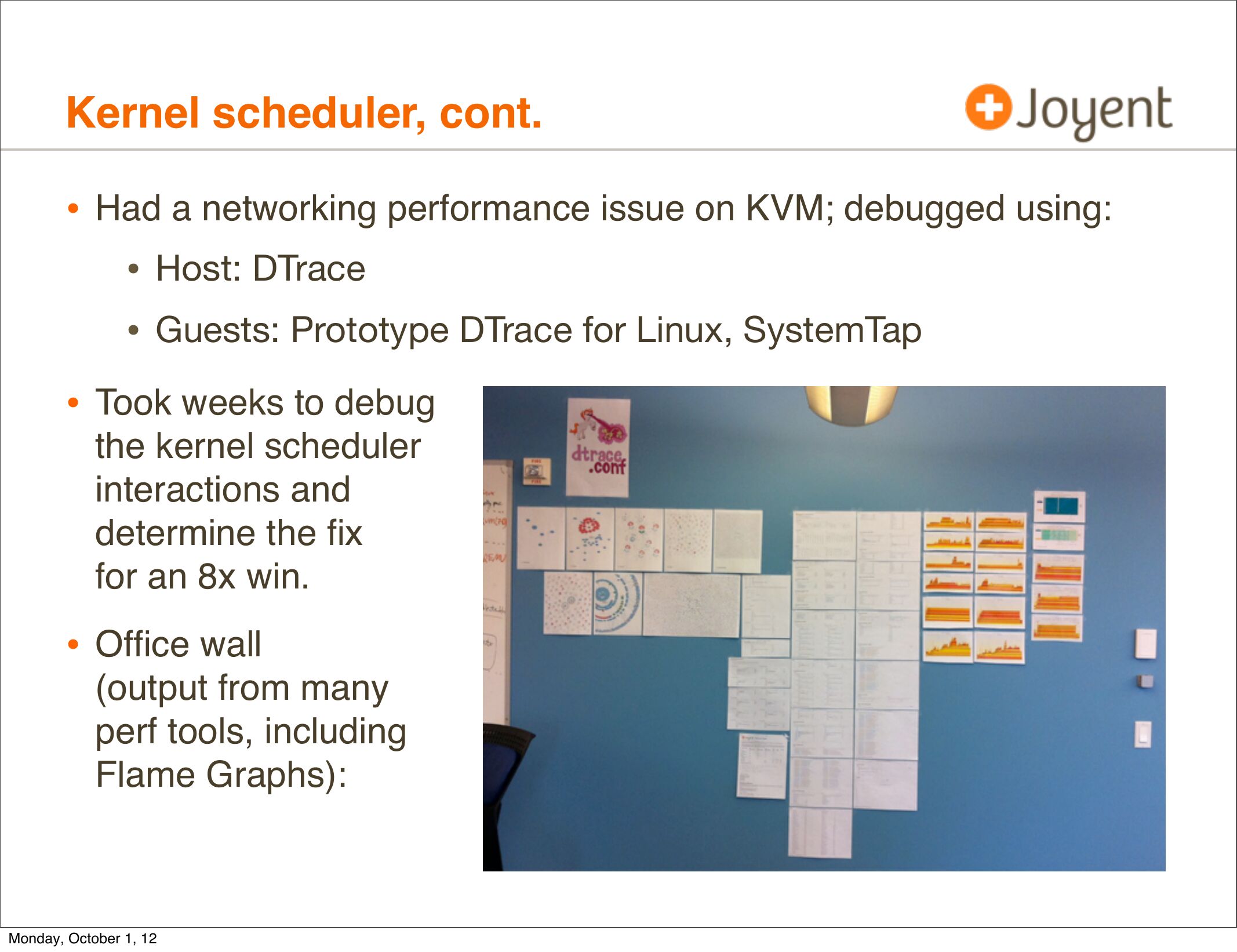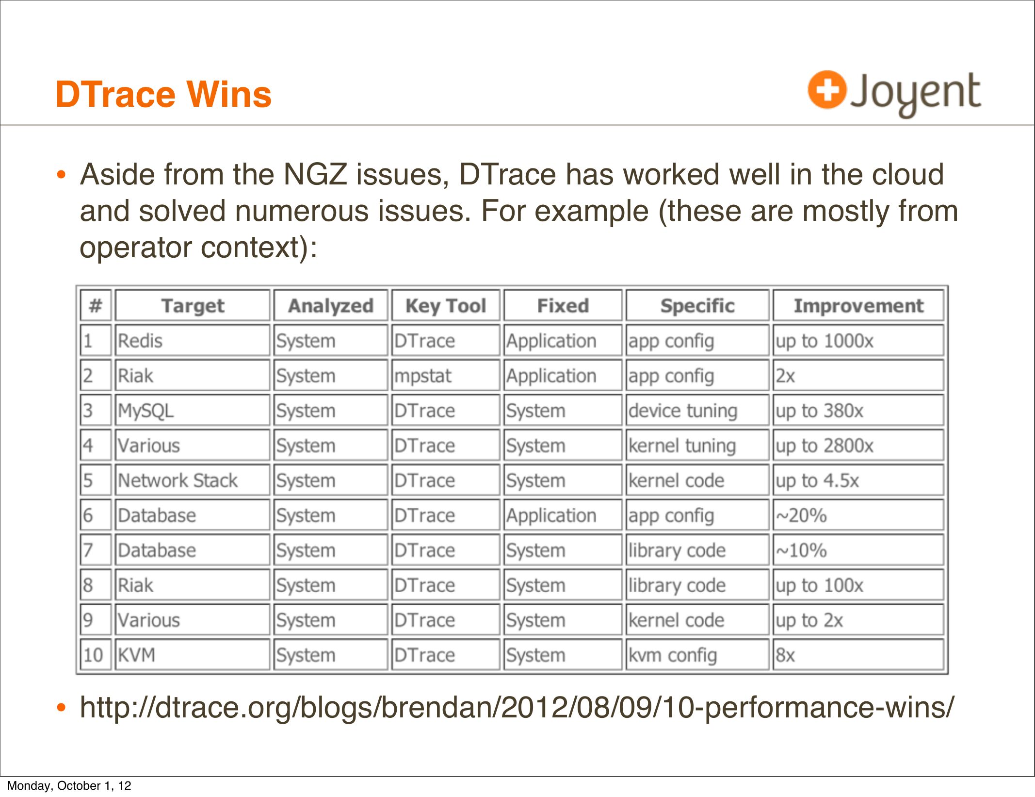 This talk covers DTrace in the illumos-based cloud, showing examples of real-world performance wins."