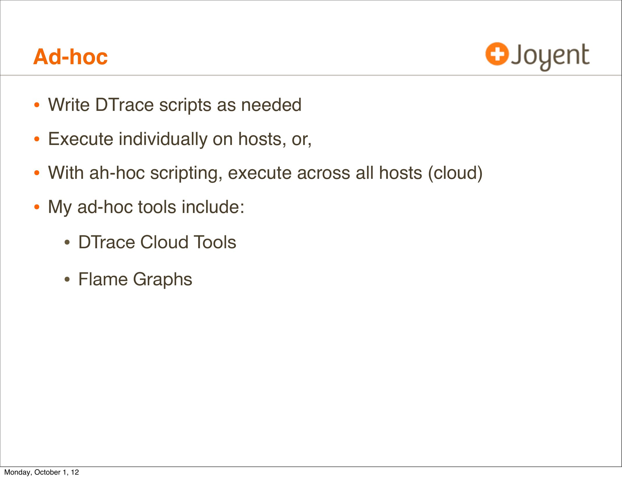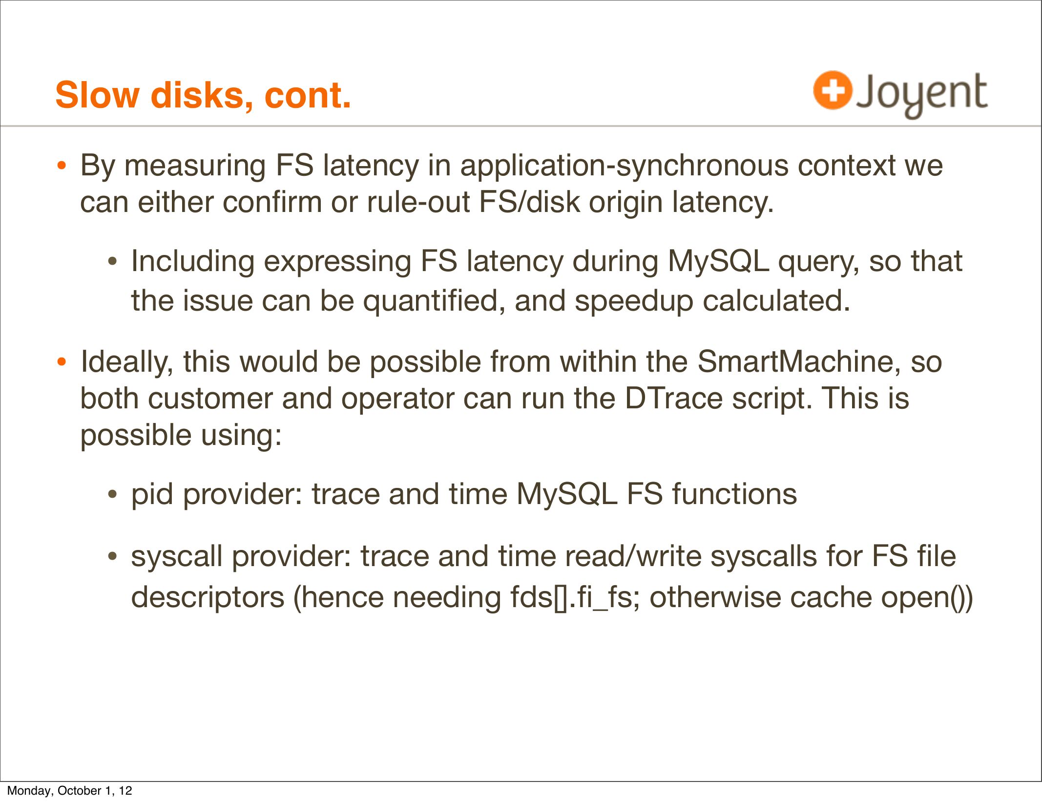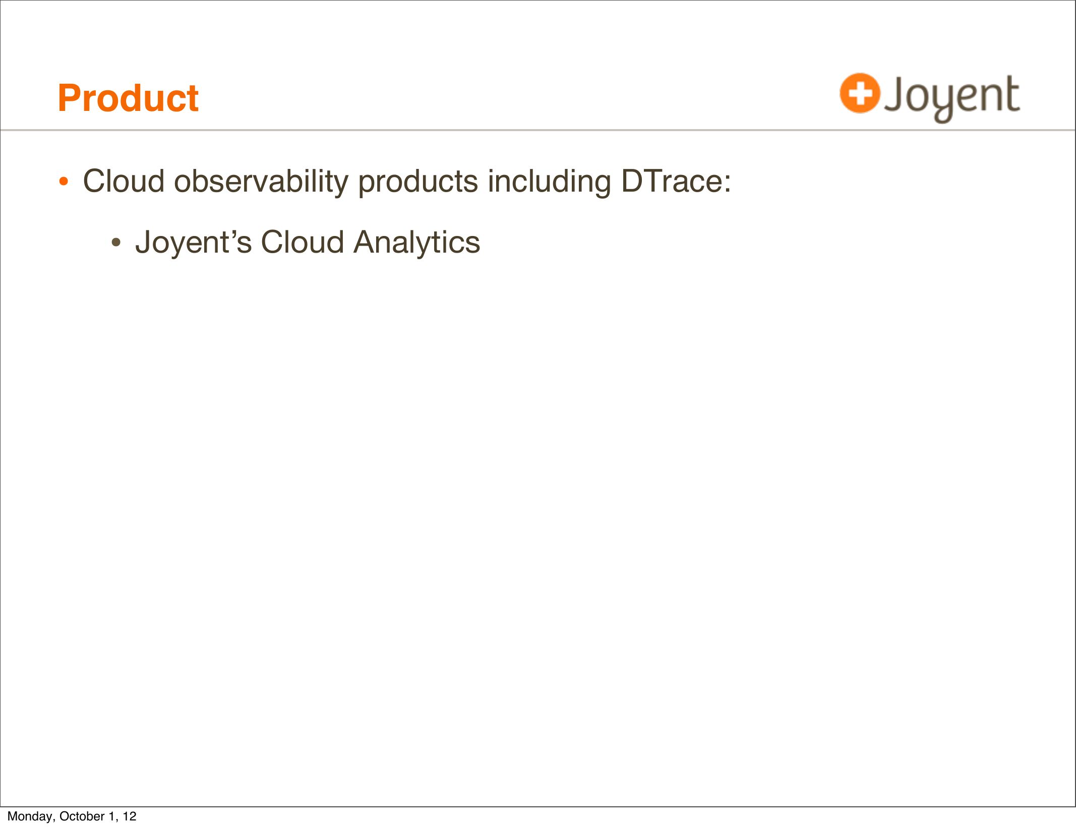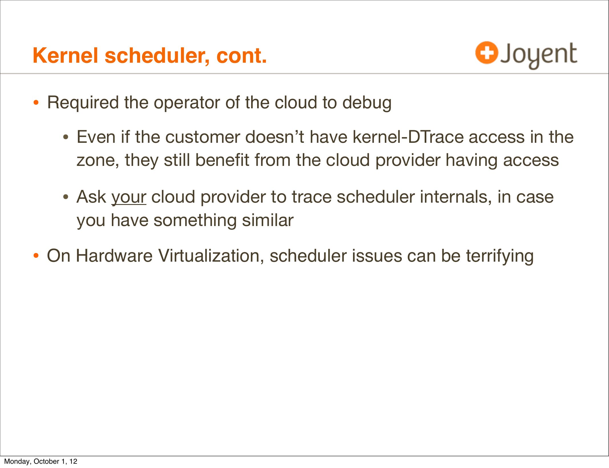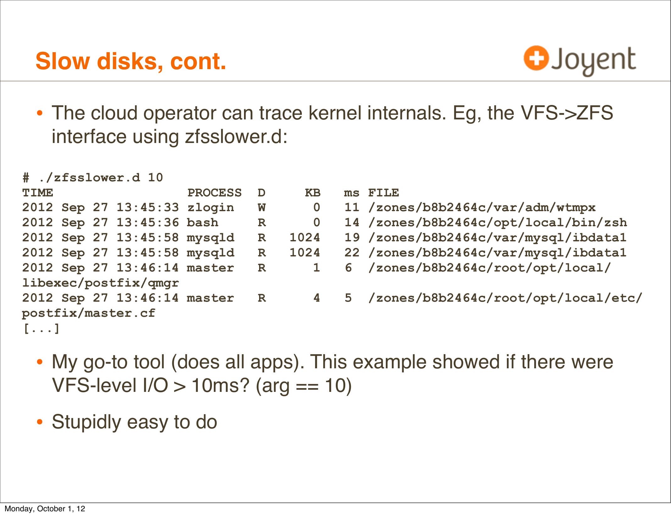 This talk covers DTrace in the illumos-based cloud, showing examples of real-world performance wins."