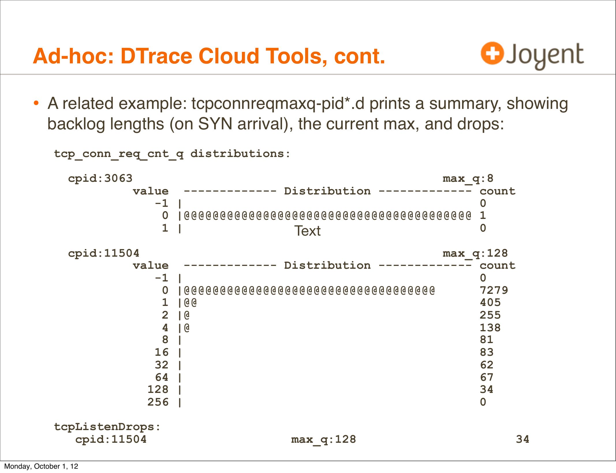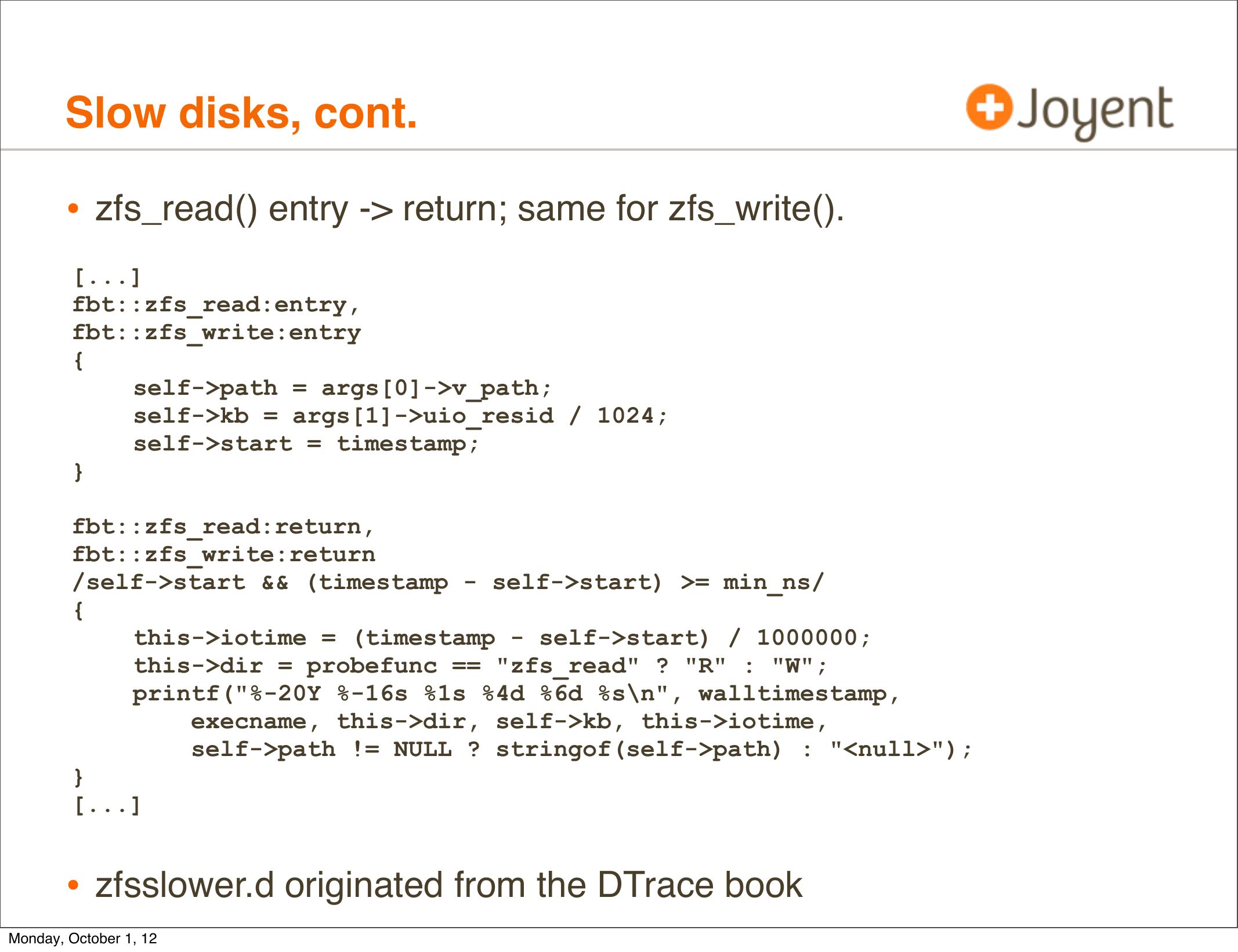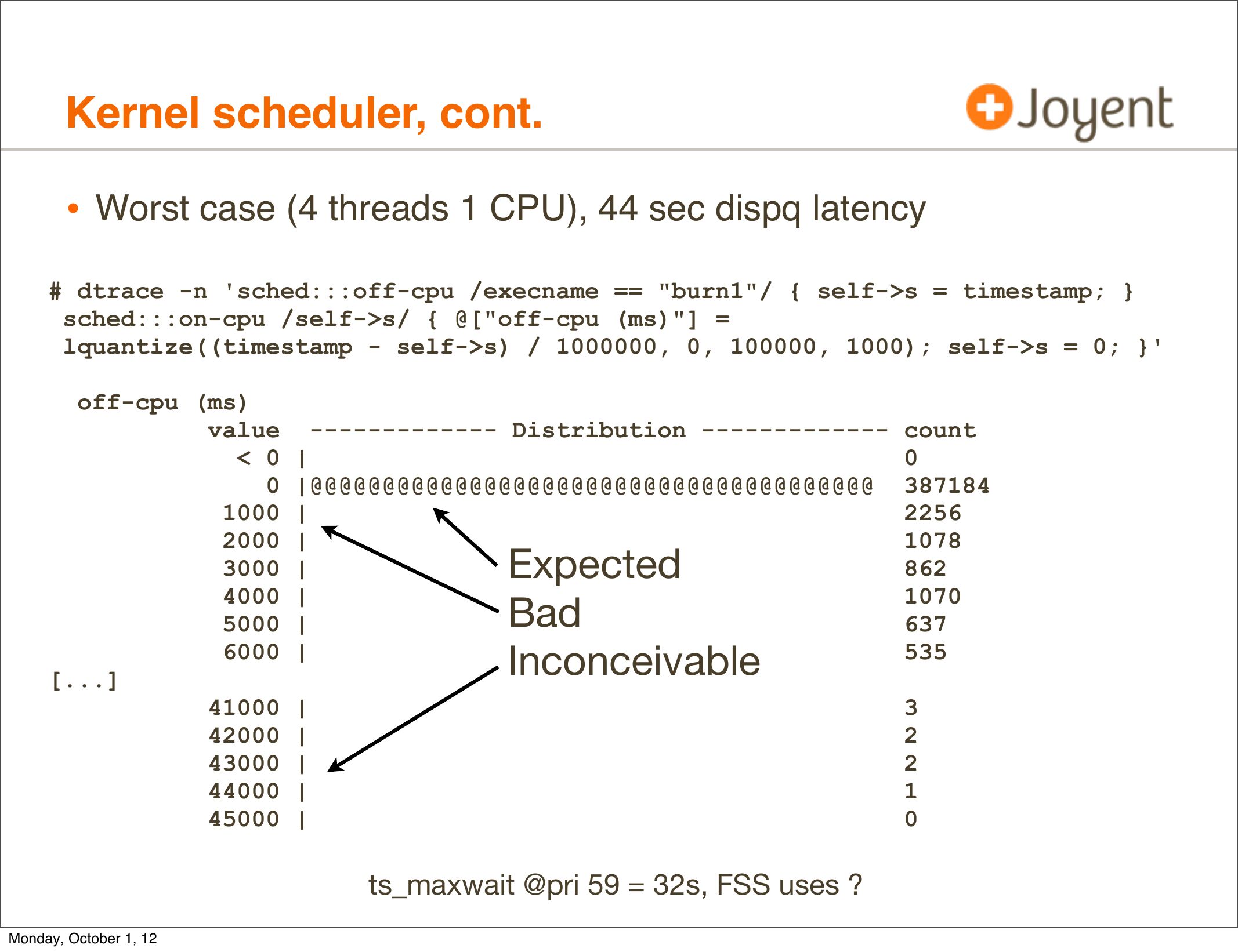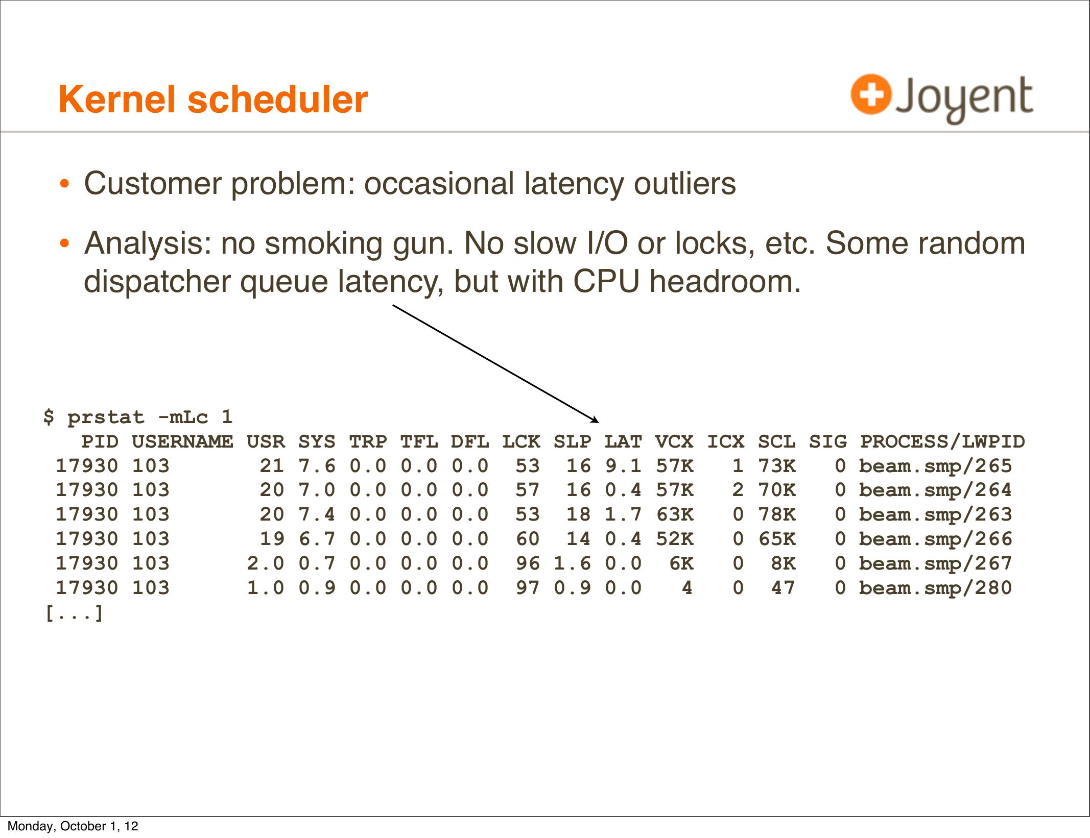 • Analyzed (more DTrace) and fixed (thanks Jerry Jelinek)