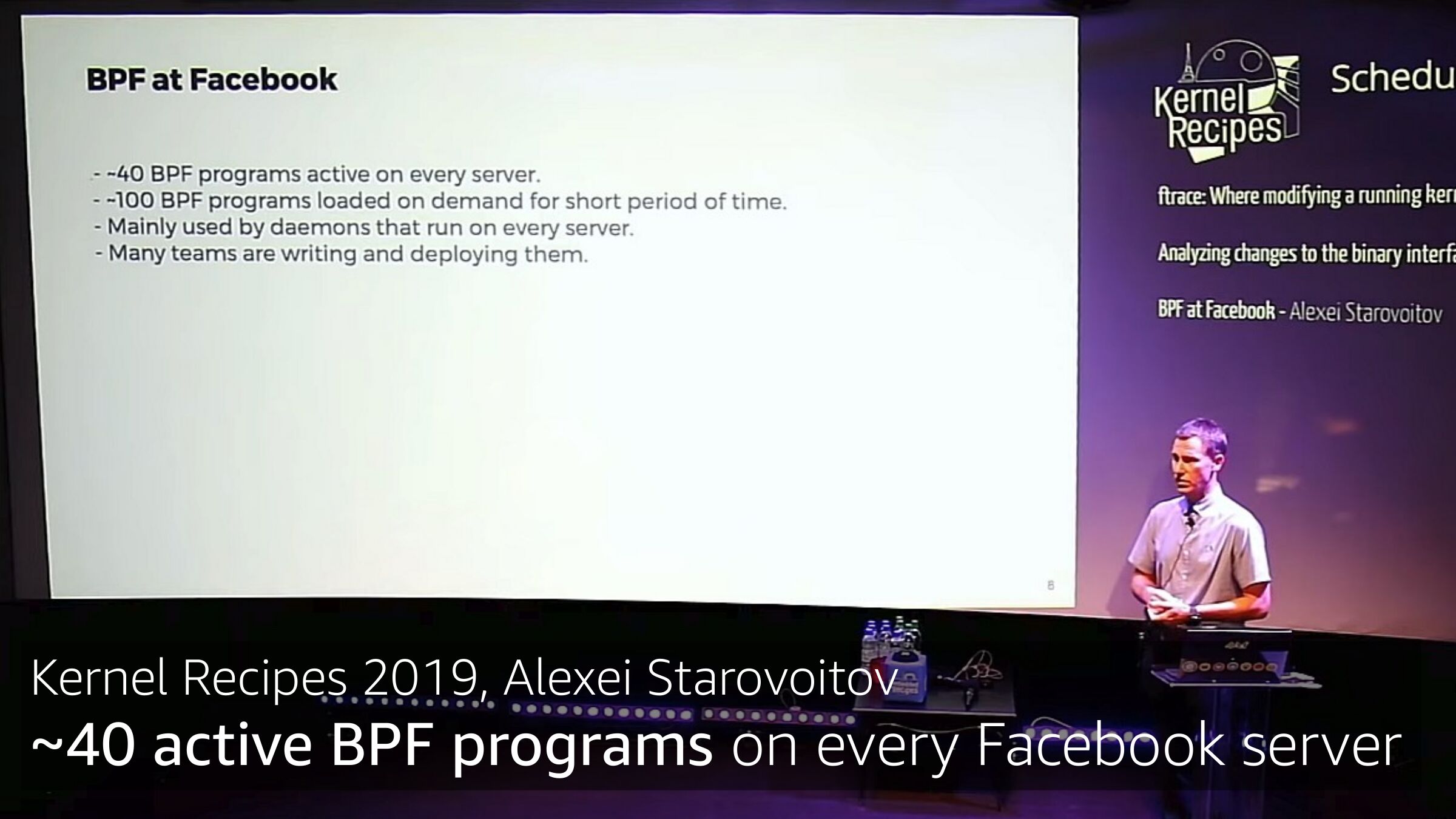 Kernel Recipes 2019, Alexei Starovoitov ~40 active BPF programs on every Facebook serverslide 13: